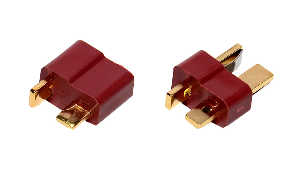 Т-разъем, в простонародье – «тэшка», станет отличной заменой базового tamiya-коннектора. Т-разъем имеет большую площадь контакта и обладают большей тепло и электропроводимостью. Также стоит заметить, что коннекторы t-типа гораздо надежнее фиксируются друг с другом, благодаря, опять же, большей площади контакта.