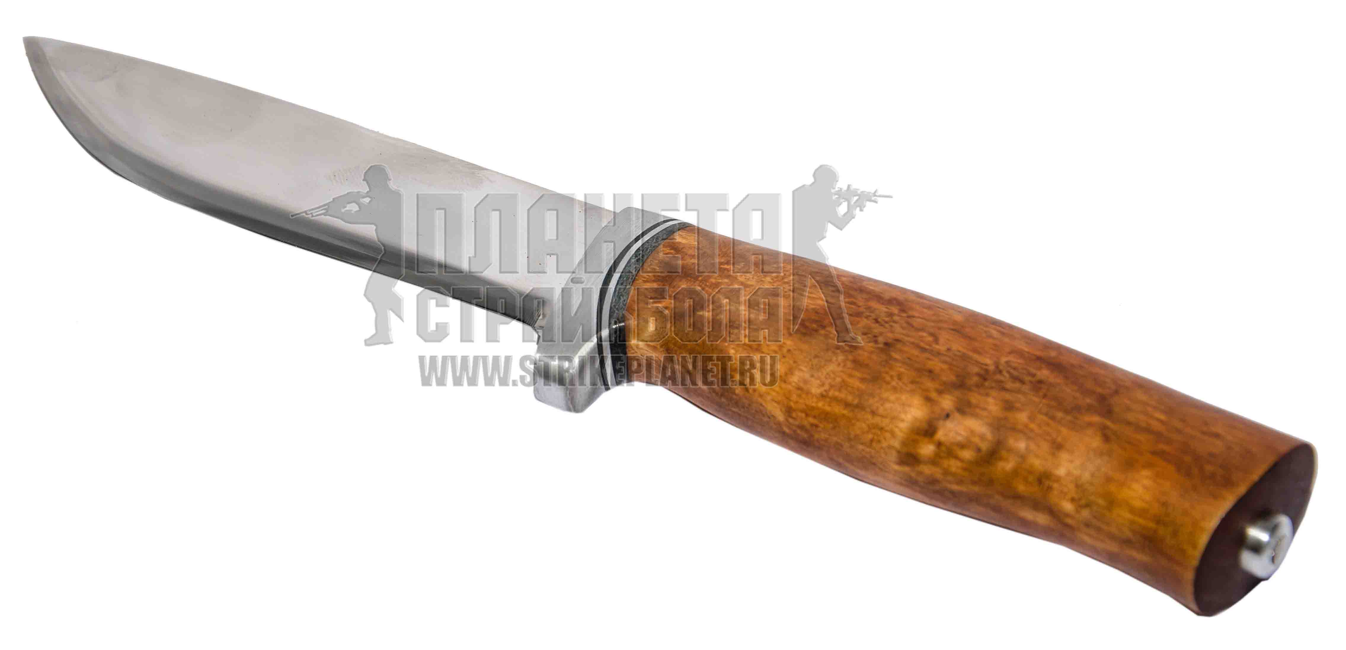 Данный нож от норвежской компании Helle придется по вкусу любителям больших ножей с удобным упором на гарде. Он станет отличным спутником в походах и при бушкрафте и его удобно переносить в качественных кожаных ножнах, которые идут с ним в комплекте. Клинок ножа изготовлен из высококачественной трехслойной ламинатной стали – высокоуглеродистая твердая сердцевина обеспечивает отличную заточку и уверенный рез, а внешние более мягкие нержавеющие обкладки придают клинку упругость и пластичность. Классический скандинавский нож для охотников, рыбаков и любителей активного отдыха. Нож прекрасно держит заточку, рукоять изготовлена из ценных пород дерева, а ножны из толстой кожи придают ножу богатый внешний вид и имеют специальную пропитку от влаги и загрязнений.