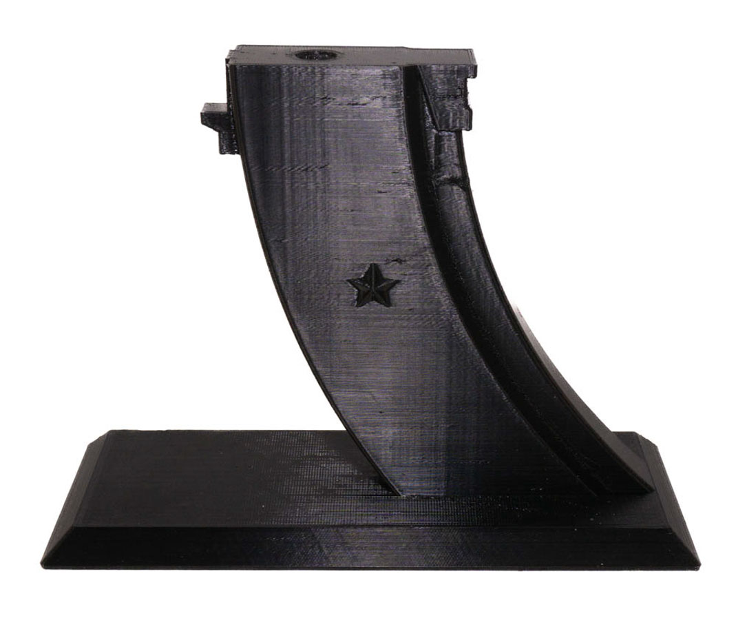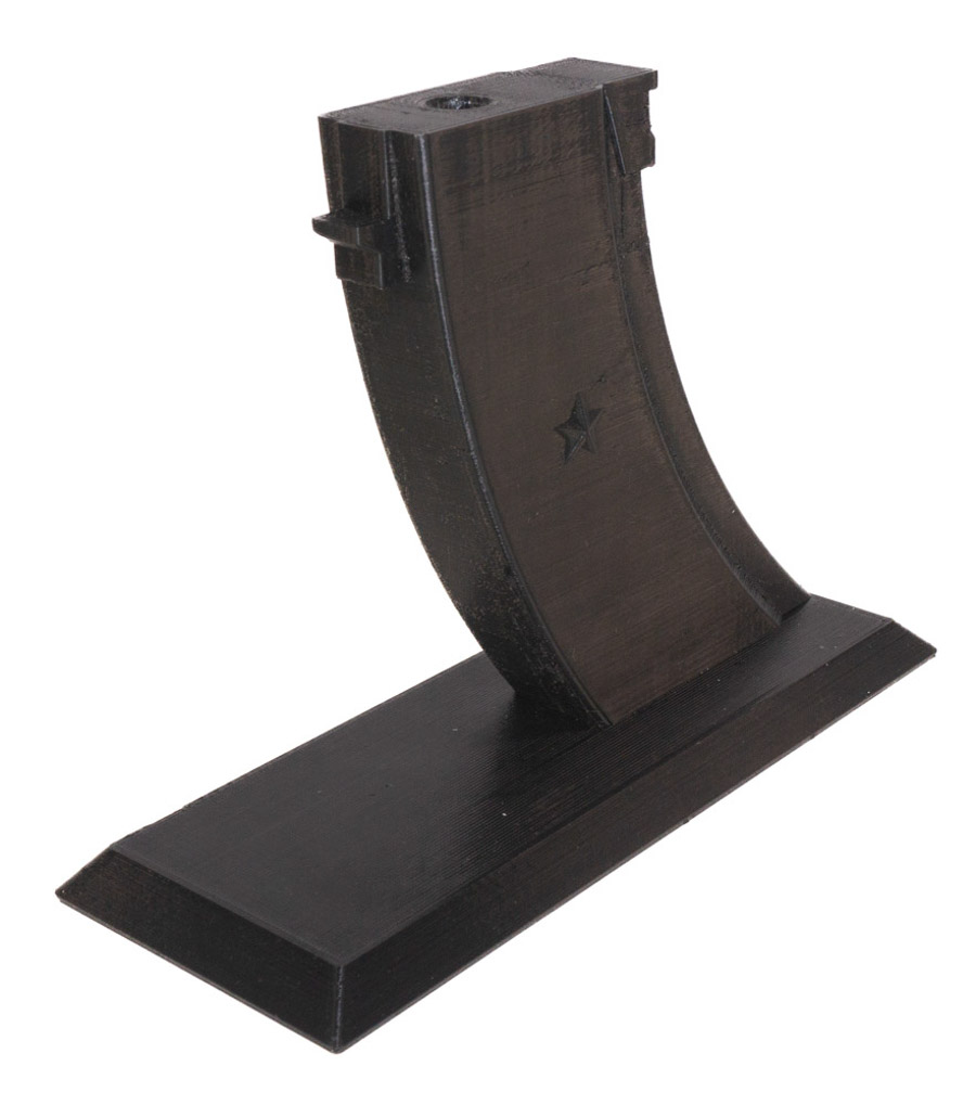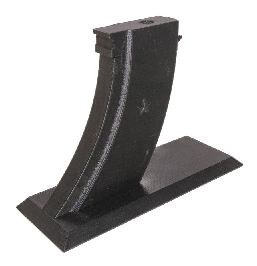 Подставка Strike для приводов АК серии выполнена из PETG пластика по технологии 3D печати. Материал отличается гибкостью и высокой устойчивостью к нагрузкам. Кроме того, он имеет высокую прочность. Все это обеспечит изделию длительный срок службы. Подставка монолитна, изготовлена в виде магазина для Автомата Калашникова. Для установки привода необходимо вытащить магазин и установить вместо него держатель. Данная компоновка сделает хранение более эффектным.