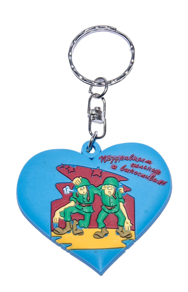 Брелок "Поздравляем сильных и выносливых" изготовлен из резины в форме сердца и дополнительно оснащен железным кольцом на короткой цепочке, что позволяет закрепить его на ключах. Брелок станет хорошим сувениром для отслуживших в армии людей.