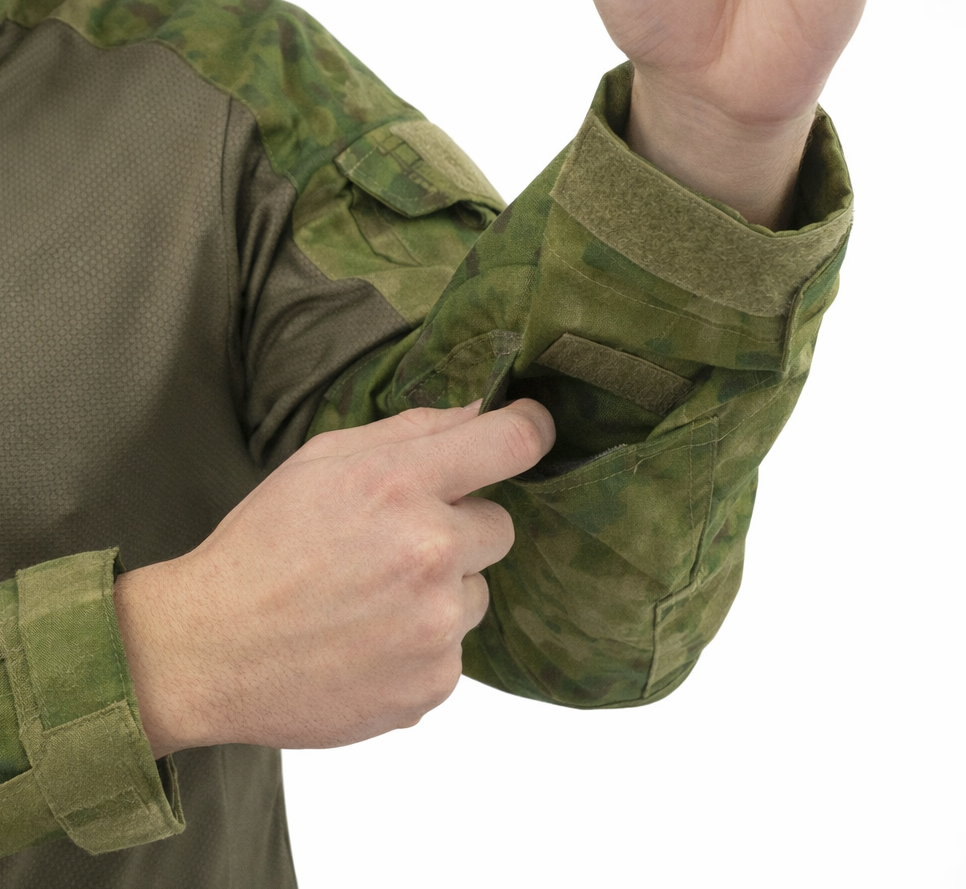 На рубашке имеются панели велкро на карманах рукавов для размещения патчей и нашивок. Манжеты регулируются так же легко, за счёт липучки, поэтому простым движением их можно ослабить или подтянуть, а широкий срез позволяет спокойно закатать рукава, когда становится жарко или нужно больше свободы. Воротник на молнии даёт возможность быстро застегнуться от ветра или наоборот открыть грудь для вентиляции в жаркую погоду.