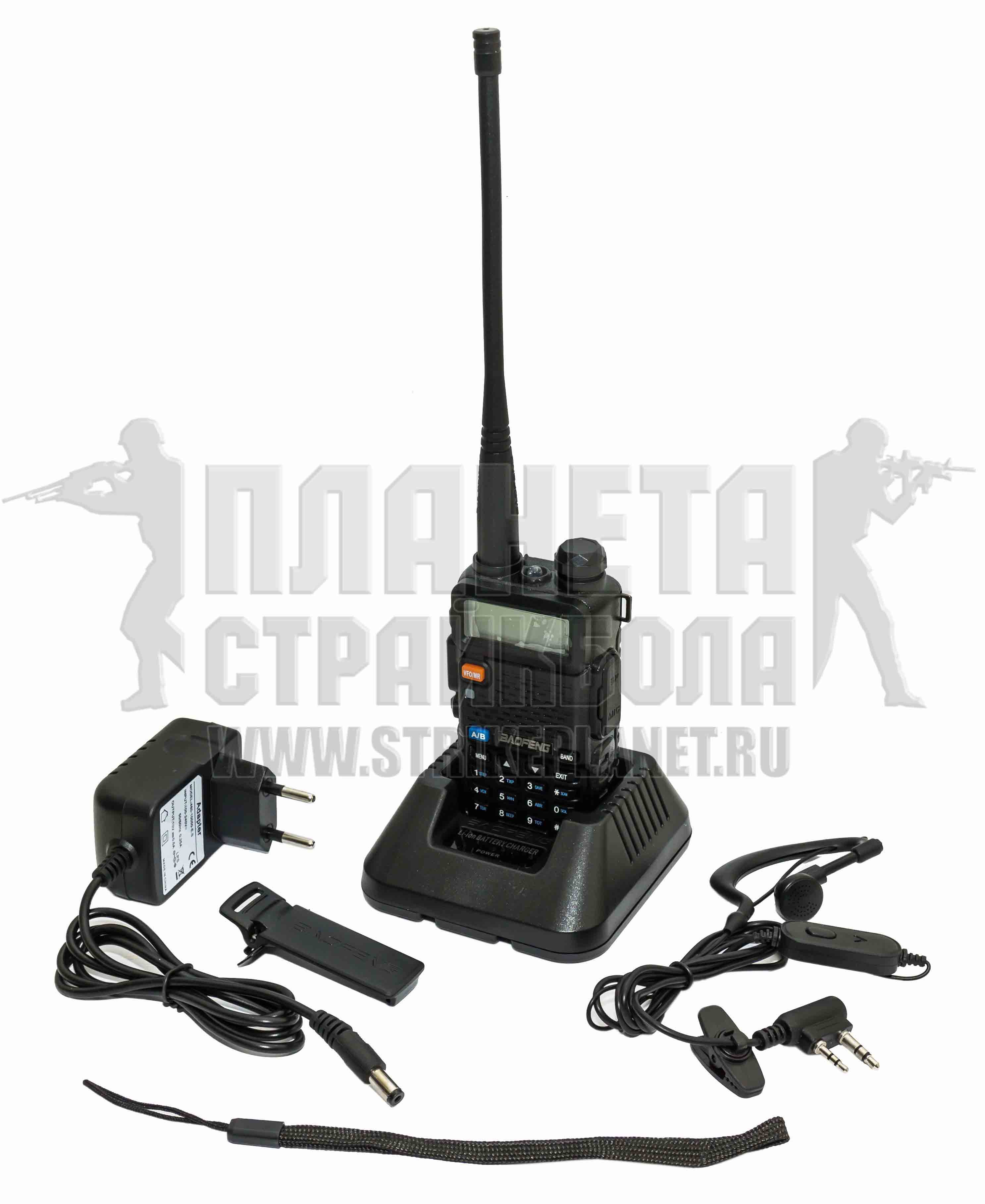 Легендарная радиостанция UV-5R от Baofeng, но теперь с новой начинкой, получившей передатчик мощностью в 8 Ватт. Повышение мощности существенно увеличило «дальнобойность» и качество связи на пересеченной местности, что будет очень полезно для страйкбольных игр на полигонах с разнообразным ландшафтом. Радиостанция работает в двух диапазонах UHF и VHF. В комплект поставки входит сама радиостанция, литиевый аккумулятор, антенна, поясная клипса и зарядный стакан.