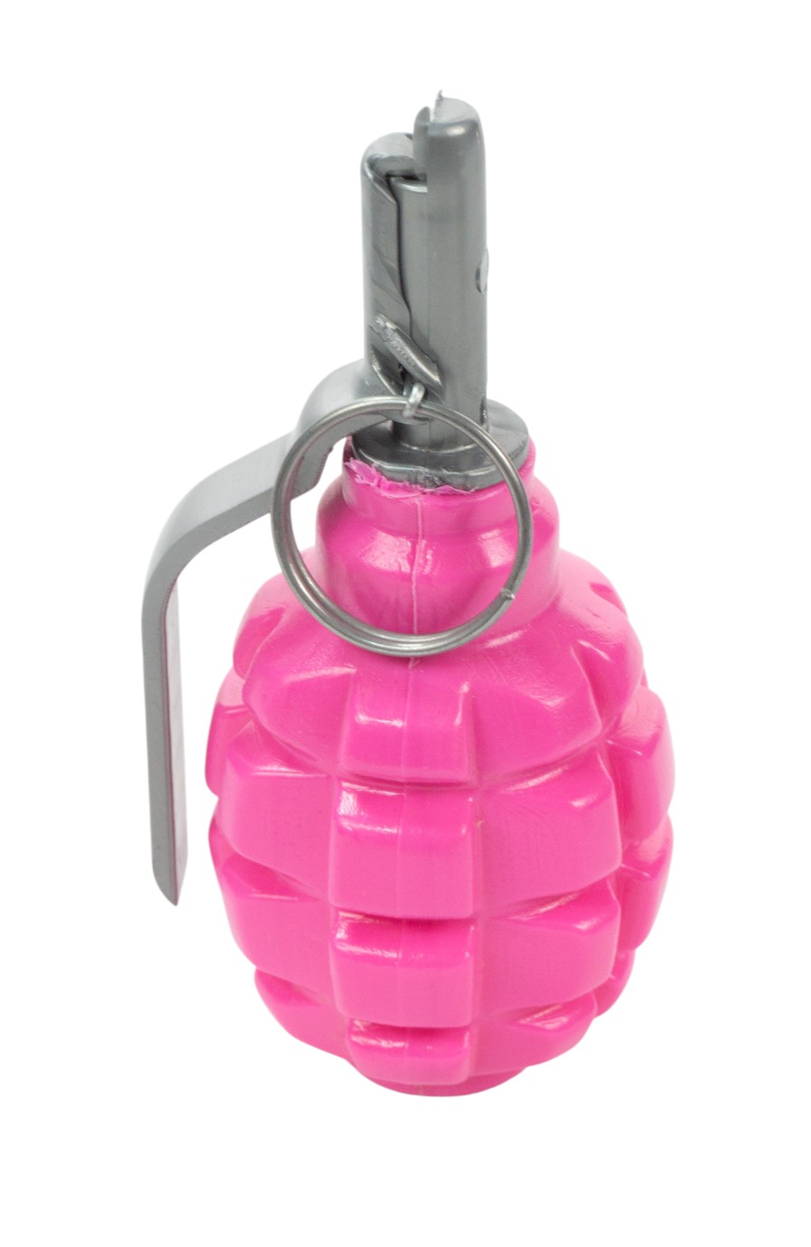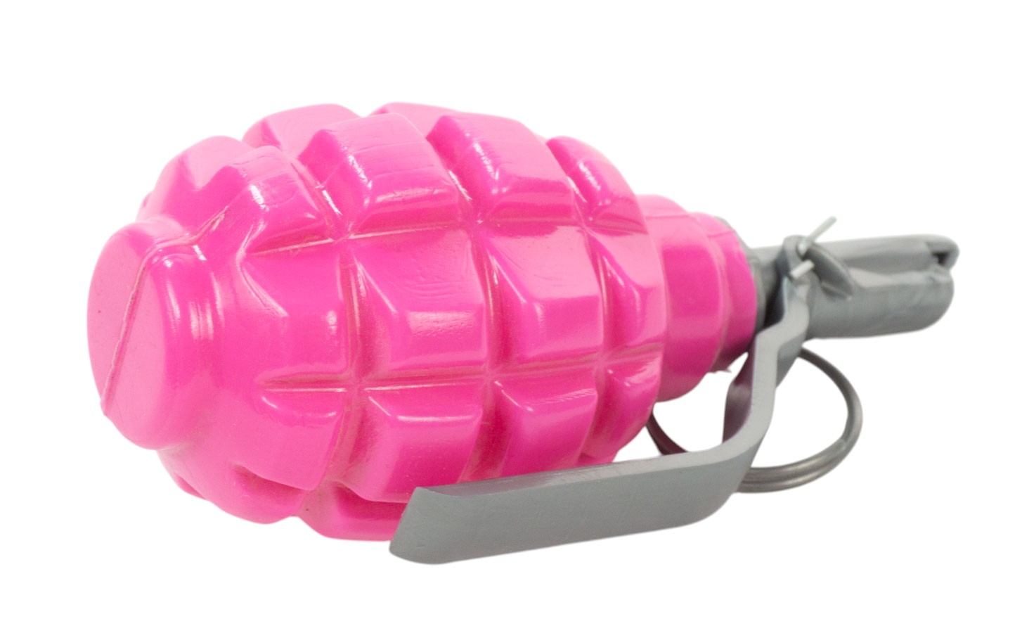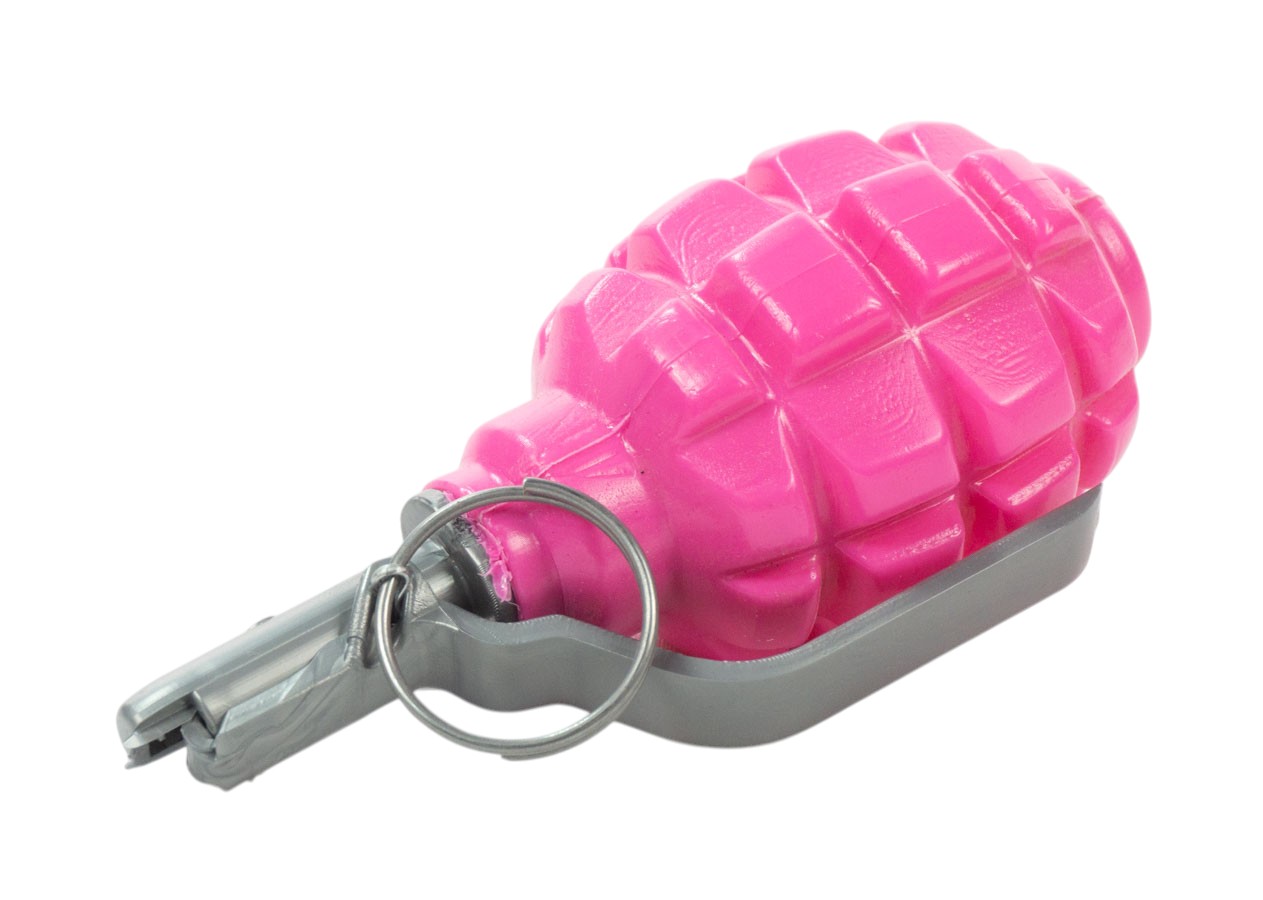 Корпус изготовлен из прочного пластика, внутри установлен пироэлемент, сопоставимый по мощности с 4-м корсаром, а в качестве безопасного поражающего наполнителя используется горох. Он проклеен, поэтому никакого «погремушечного» звука при переноске вы не услышите. Для активации достаточно выдернуть чеку, отпустить скобу и метнуть гранату — сработает она через 4 секунды. Яркая, эффектная и при этом безопасная — розовая Ф1 станет как полезным, так и забавным дополнением к вашему страйкбольному снаряжению.