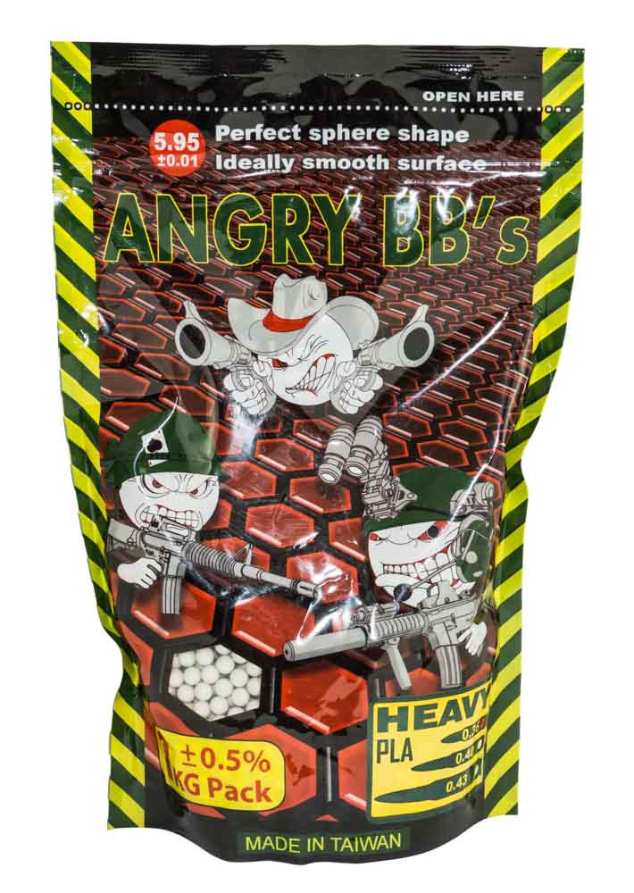Шары марки ANGRY представляют собой один из лучших вариантов «боеприпаса» для страйкбольного оружия в бюджетном ценовом сегменте. Отличное соотношение цена / качество придётся по вкусу игрокам, которые предпочитают много стрелять и цена расходников для которых имеет значение. Шарики весом 0.36 грамм используются в страйкбольном оружии с начальной скоростью выстрела 130 – 150 м/с. Довольно тяжёлый шар, который хорошо пробивает кусты на автоматическом оружии. Имея хороший стволик и качественный хоп-ап с резинкой, тридцать шестыми шарами вполне можно вести прицельный огонь на дистанции в 70 метров.
