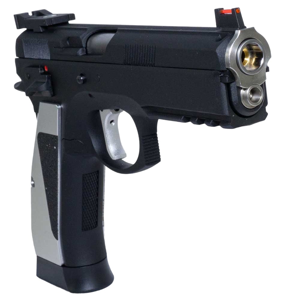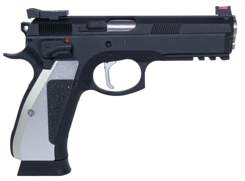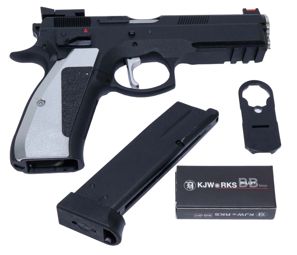 Страйкбольный пистолет от компании KJW - CZ SP-01 ACCU, так же, как и его реальный образец поразит своими характеристиками всех любителей страйкбола.  Выполнен пистолет из прочных и качественных материалов. Из металлического сплава реализованы такие детали конструкции как: кожух затвора, рамка пистолета, щечки рукояти, корпус магазина, курок, спусковой крючок. Из стали выполнены крепежные элементы.