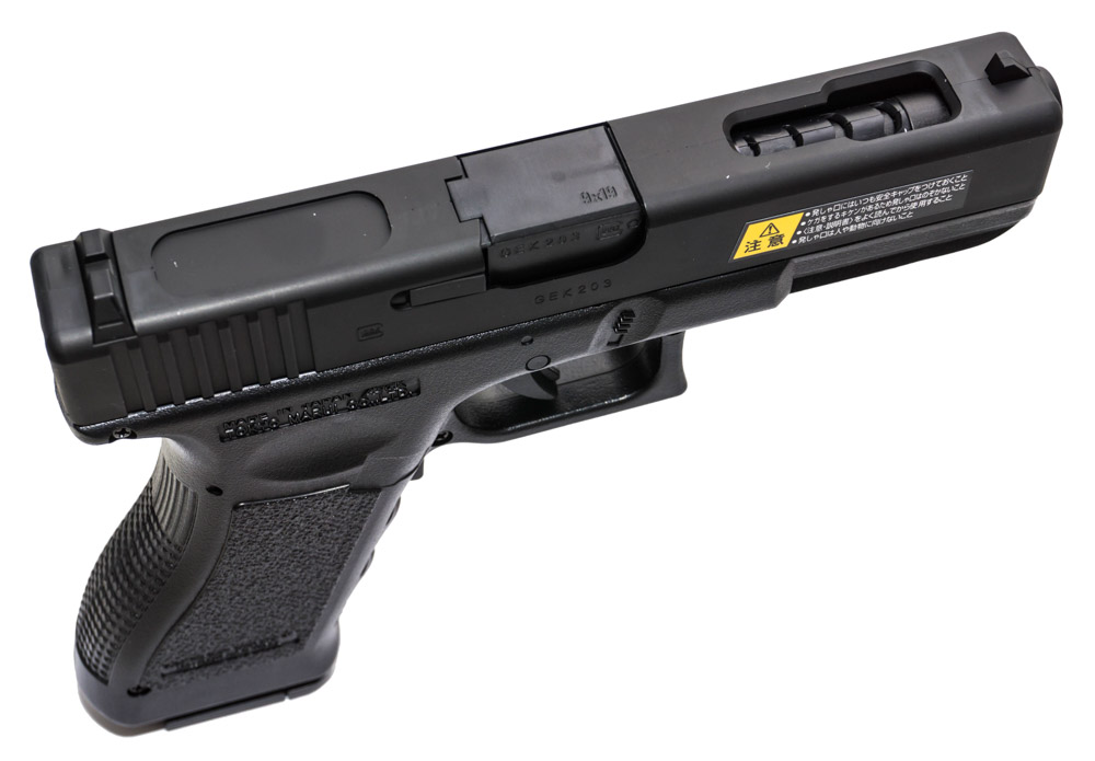 Данное изделие представляет собой изготовленную из пластика реплику австрийского пистолета Glock 18. Главными отличительными чертами данной модели является наличие blow-back функции, автоматического режима огня и нестандартный для страйкбольного оружия способ питания.