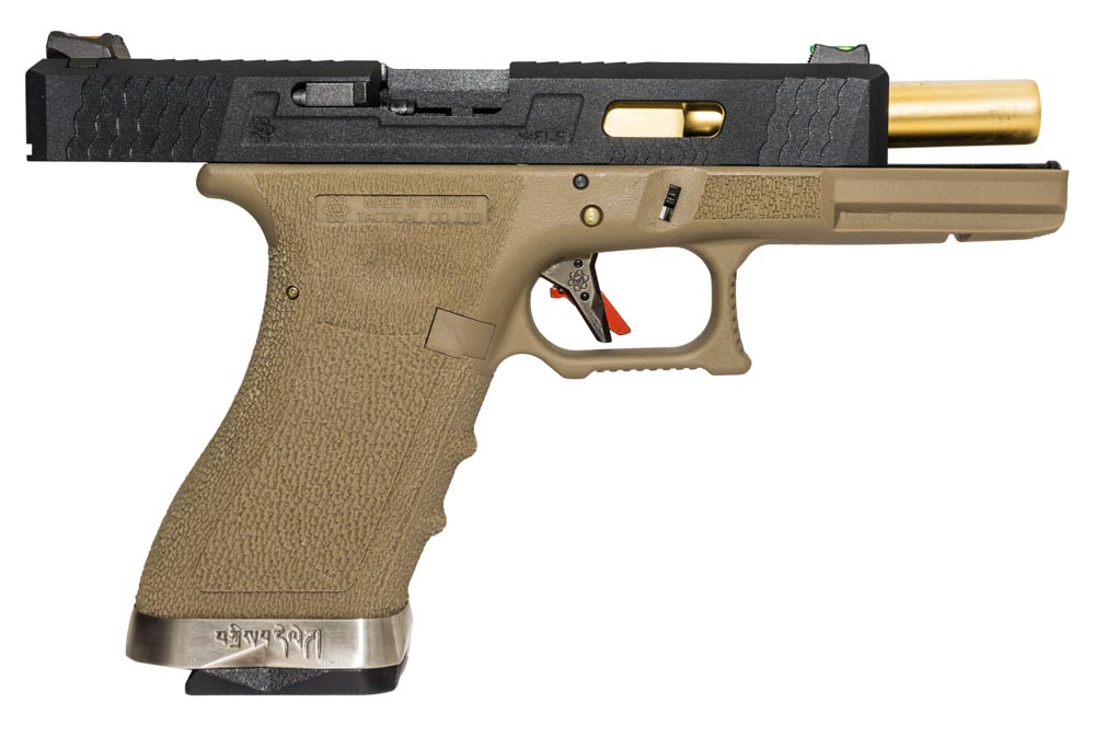 фото детально we пистолет glock 17 gen.3, greengas, tan (gp616tan) интернет-магазин "Планета страйкбола"