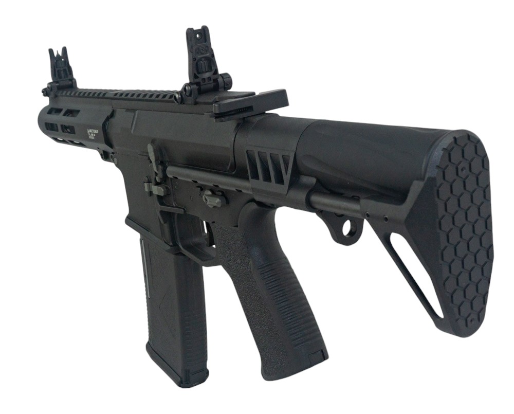 Для любителей ближнего боя есть отличная новость! Автомат от бренда Arcturus — Karambit MOD1 PDW 5.5" AEG LITE ME. Эта компактная и универсальная пушка, которая сочетает в себе эргономичный дизайн, легкий вес, чем придаст маневренность и скорость на поле боя. Представленная модель выполнена на основе платформы AR-15. Так, за счет компактных размеров боевые образцы востребованы в силовых и войсковых подразделениях по всему миру.