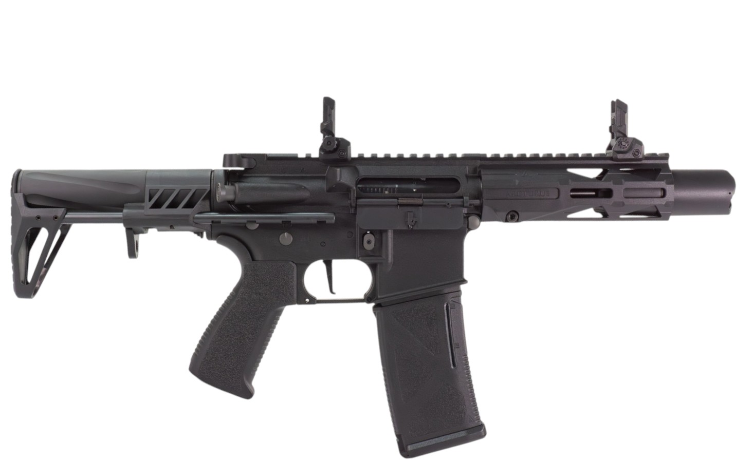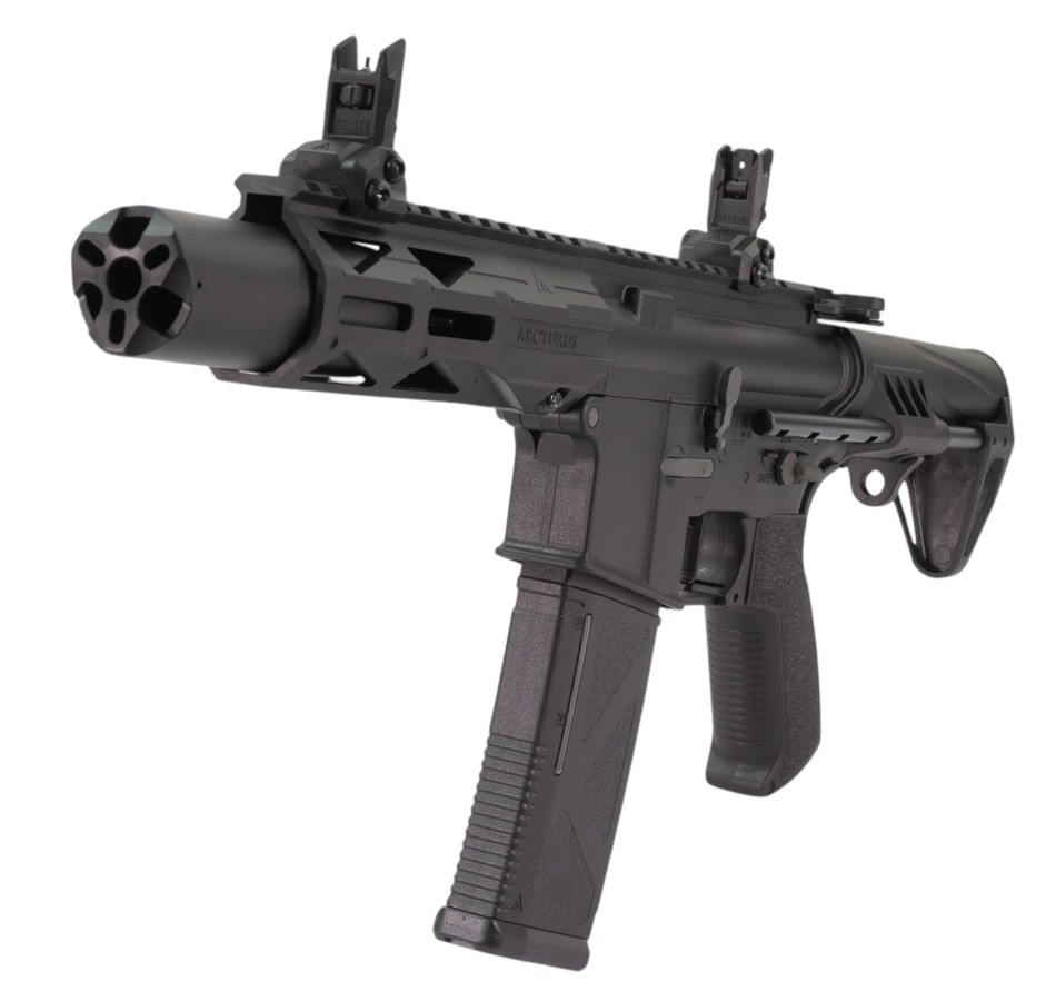 Arcturus LWT MK-III PDW 5.5" SPORT AEG SE® — это компактный и технологичный страйкбольный автомат от компании Arcturus Tactical, идеально подходящий для ближнего боя, динамичных игр и тренировок в ограниченном пространстве. Модель выполнена на базе платформы AR-15 и отличается минималистичным дизайном с акцентом на функциональность.