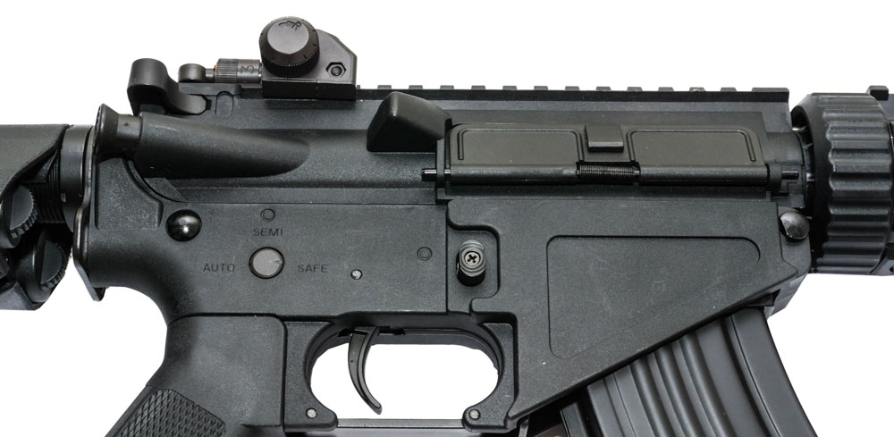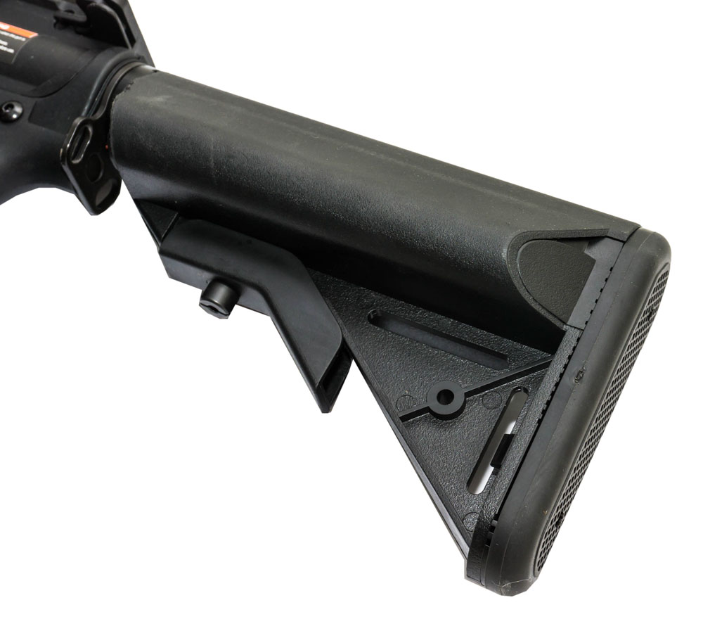 Представленная модель компонуется гирбоксом 2 версии. Отсек под АКБ располагается в прикладе. К данному автомату подойдут двухлепестковые или трехлепестковые аккумуляторы с напряжением 7.4 и 11.1 вольт. Колесико хоп-апа находится за шторкой имитации выбрасывателя.
