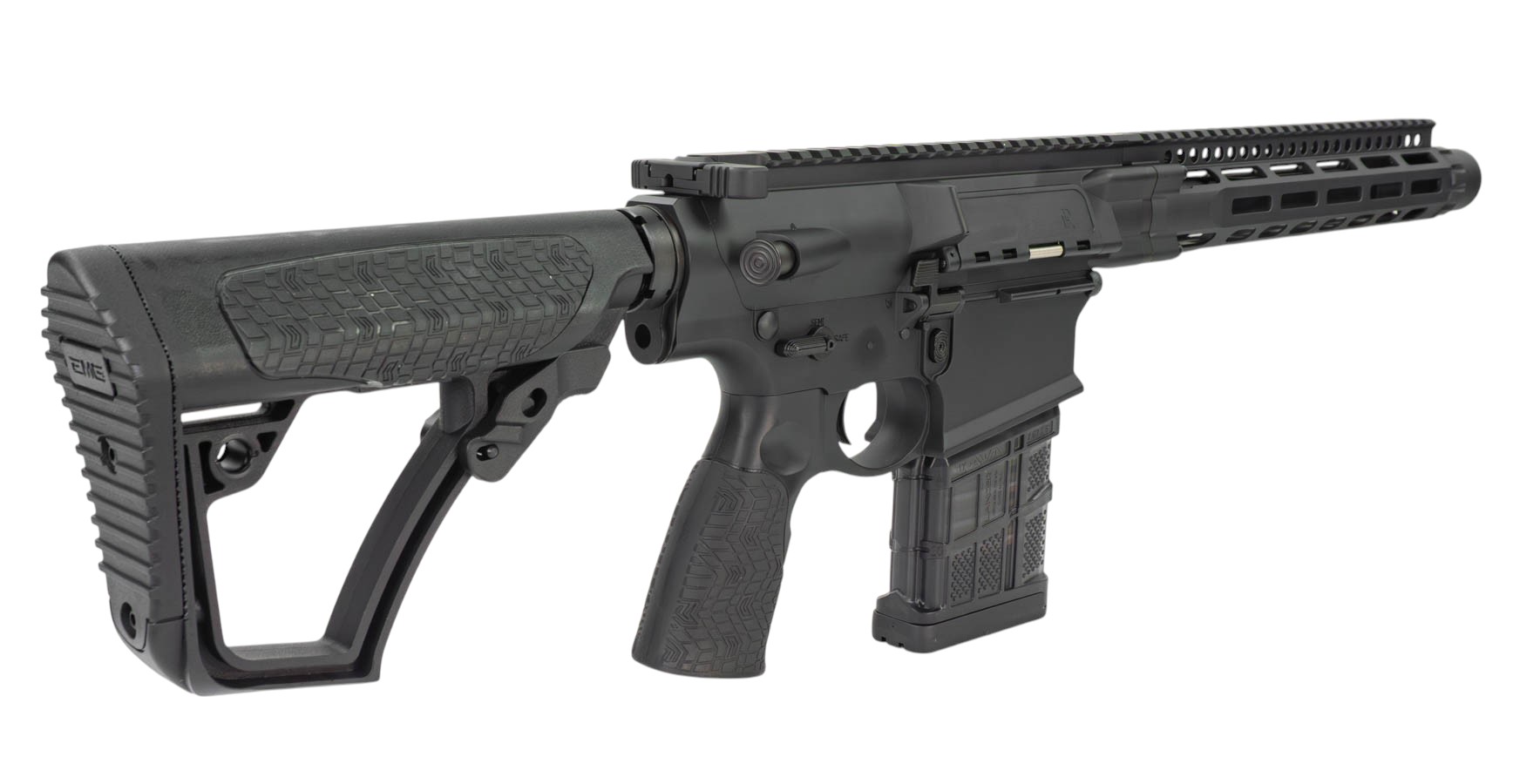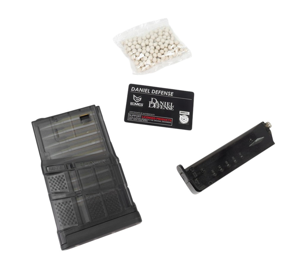 На корпусе автомата нанесены лицензионные маркировки компании Daniel Defense, что добавляет модели соответствия с боевым оригиналом. Привод подойдёт тем, кто предпочитает более аутентичное, современное оружие и ценит качество и надёжность.