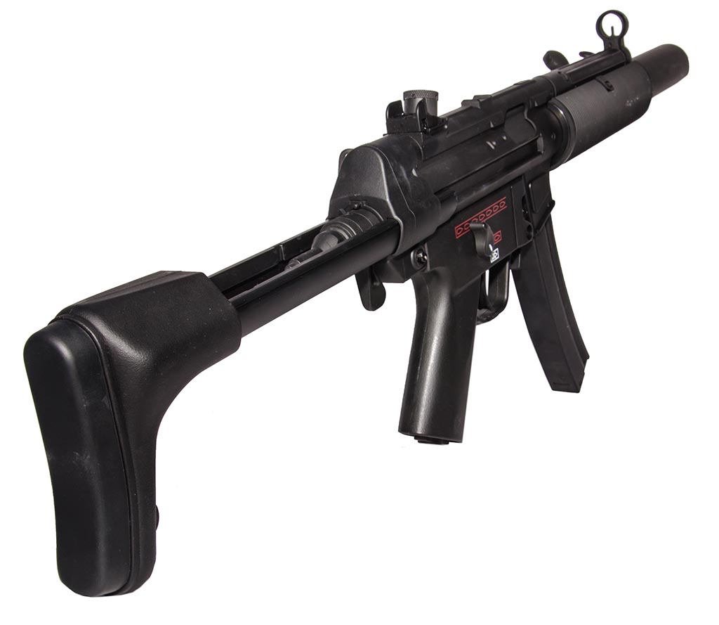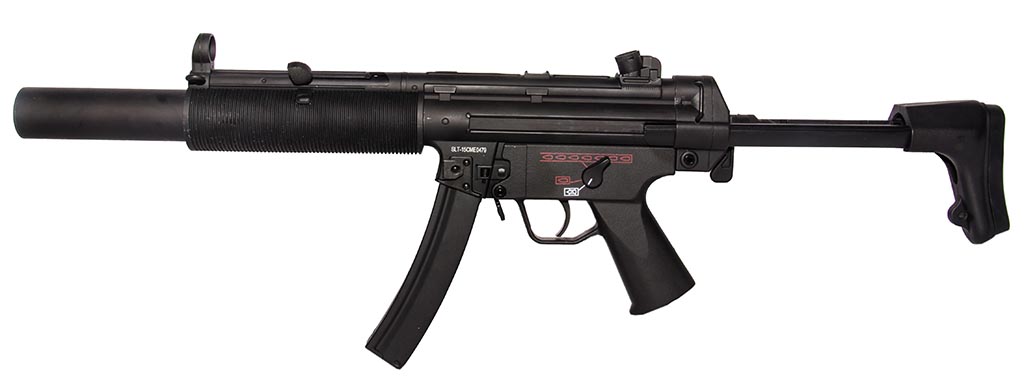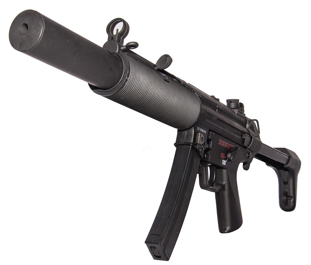 Страйкбольный пистолет-пулемет cm041sd6 от компании Cyma копирует HK MP5SD6 германского производства. Отличительной особенностью данной модели является наличие интегрированного глушителя и выдвижного приклада, который имеет несколько позиций фиксации. Корпус автомата изготовлен из легкого сплава металла и ударопрочного ABS пластика. Прицельные приспособления стандартны – мушка и регулируемый поворотами целик. Для установки коллиматорного прицела необходимо приобрести крепление с направляющей picatinny, предназначенное специально для MP5. Двусторонний переводчик огня очень удобен в обращении – переключается одним движением большого пальца, как с левой, так и с правой руки.