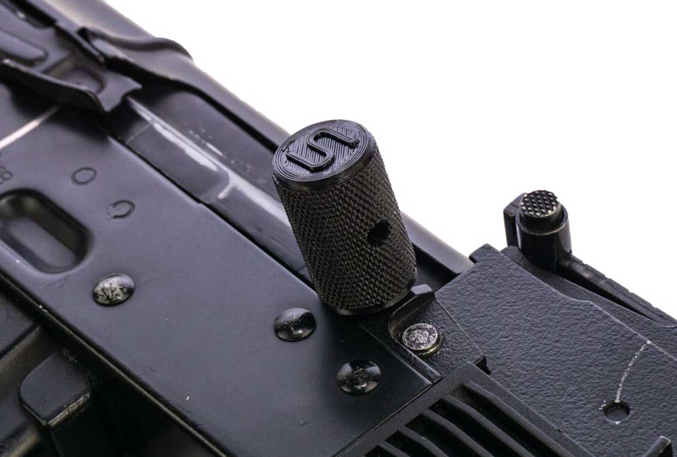 Тромикс, или рукоятка на затвор АК - аксессуар, который существенно повышает удобство взвода затвора автомата АК, особенно из неудобных положений. Дополнительно придаёт тактикульный вид. Подходит для установки на оригинальные автоматы АК и карабины Сайга, а так же ММГ, СХП и страйкольные автоматы АК, пулемёты РПК от разных производителей. В зависимости от производителя и толщины рукоятки затвора, тромикс нужно будет подтачивать для того, чтобы его надеть.