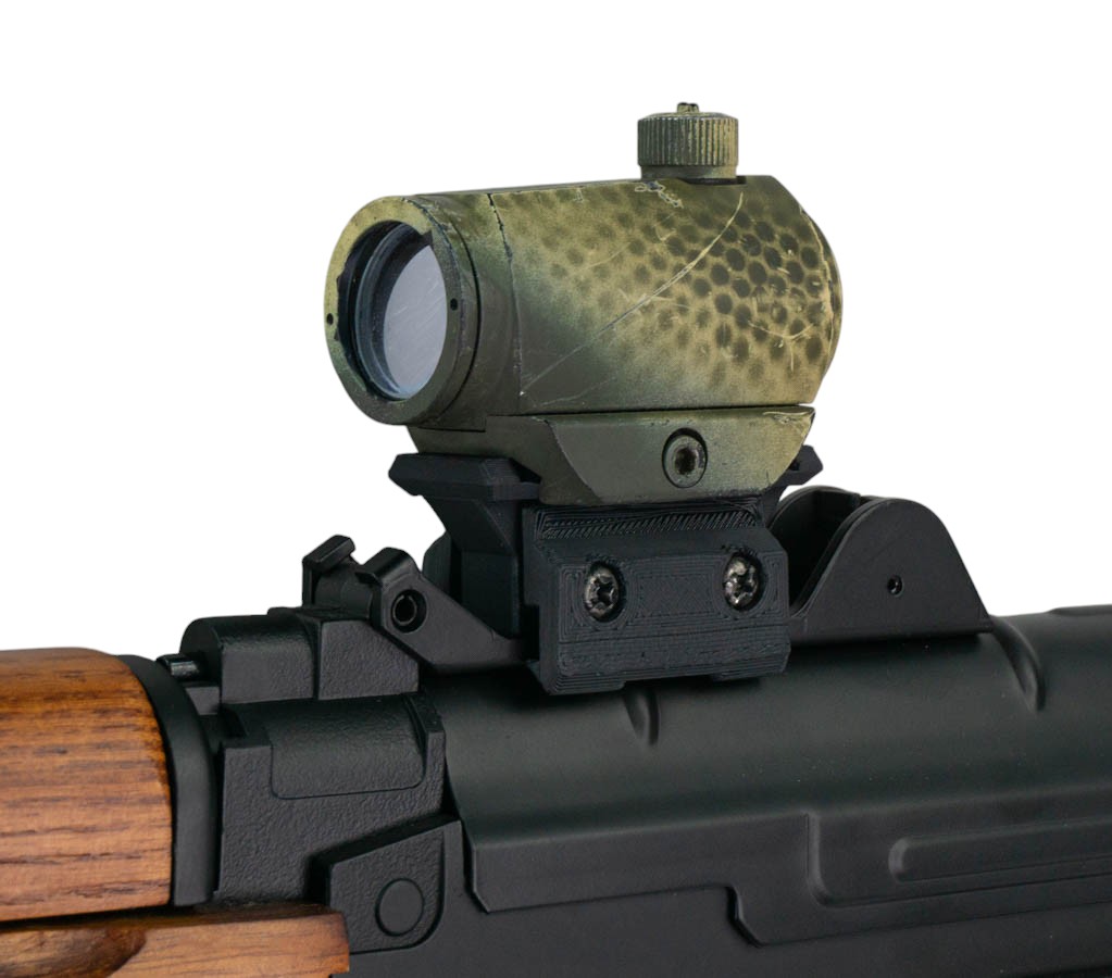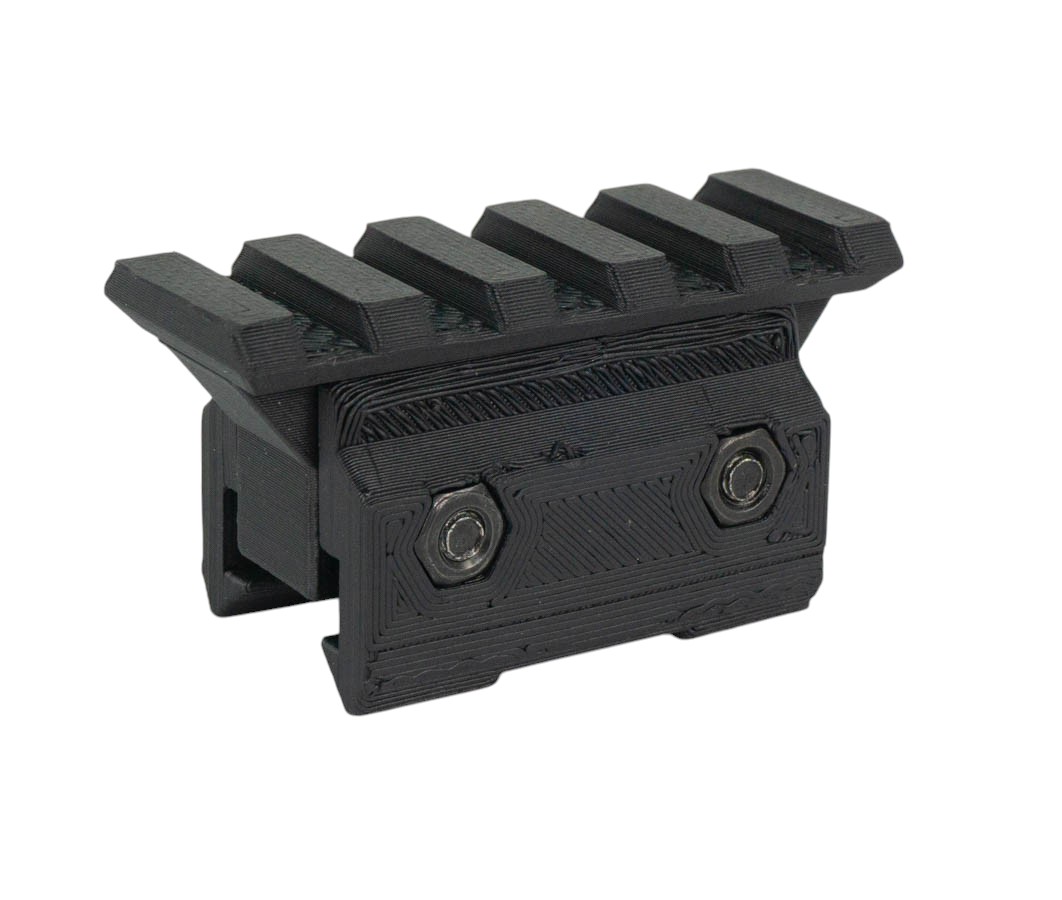 Планка picatinny от компании Strike выполнена из PETG пластика, методом 3Д печати. Предназначена для установки на страйкбольное оружие. Материал отличается высокой прочностью, гибкостью и устойчивостью к влиянию внешних факторов (УФ-лучи, влага, низкие температуры). Планка picatinny устанавливается на целик автомата АКС-74У и фиксируется на нём с помощью винтов. Данное изделие имеет длину 55 мм, и предназначена для крепления коллиматорного прицела по типу micro t-1.