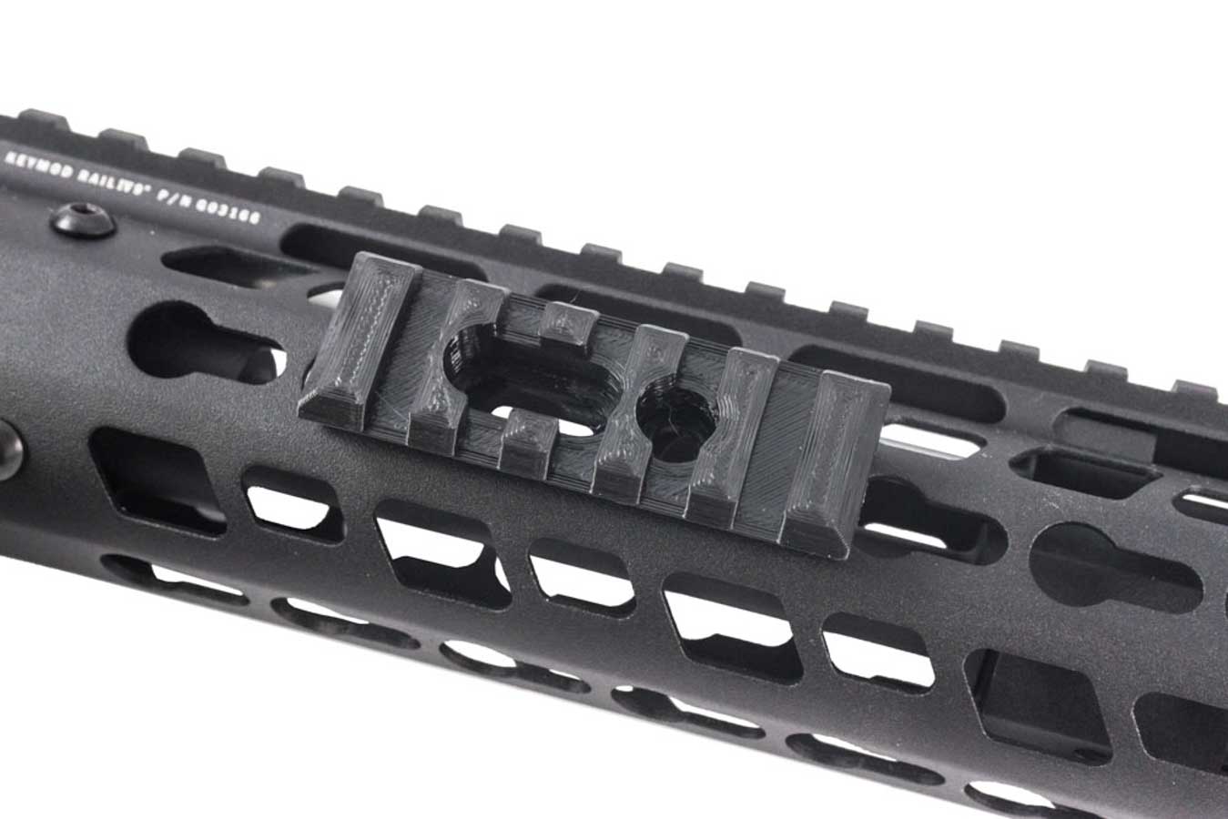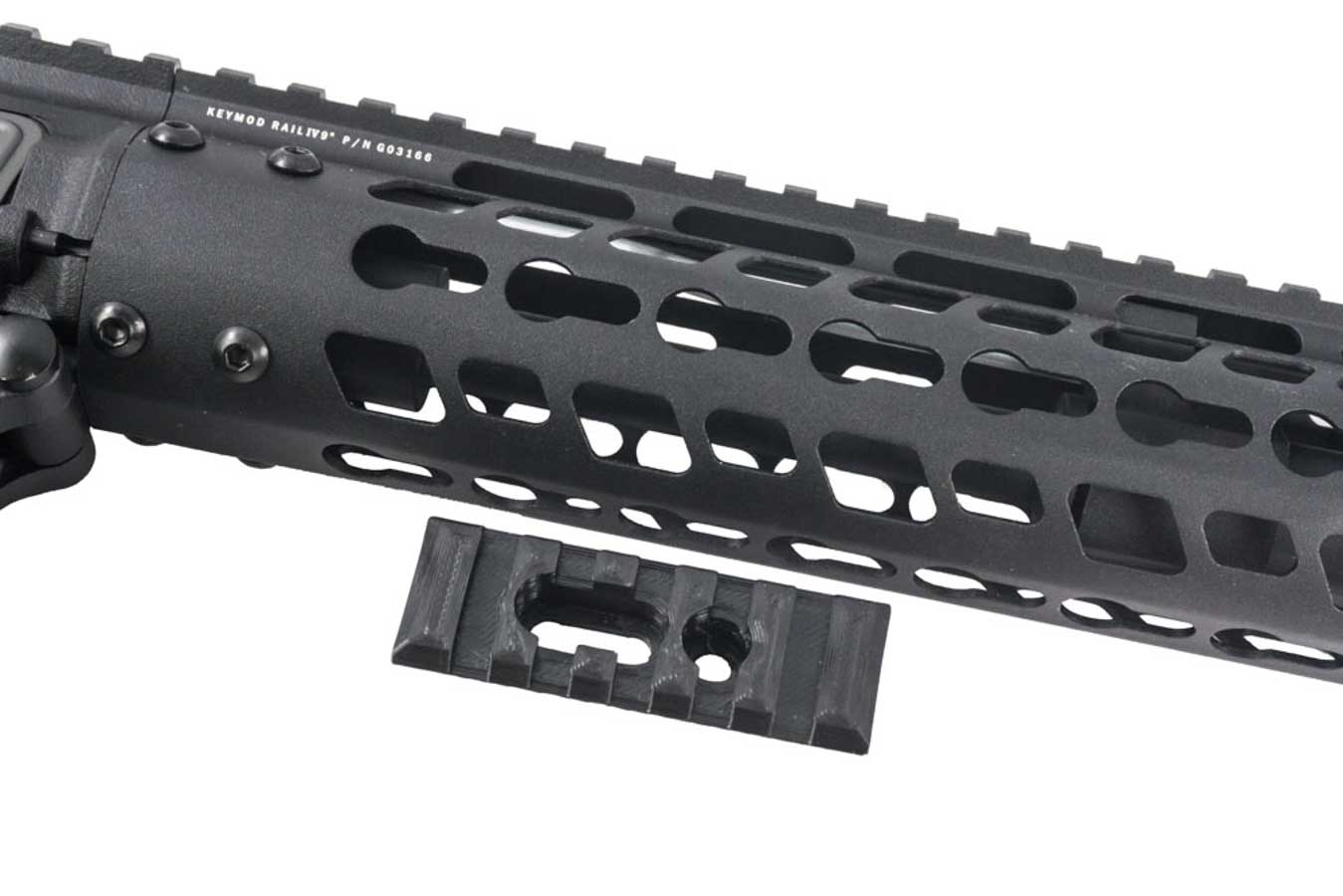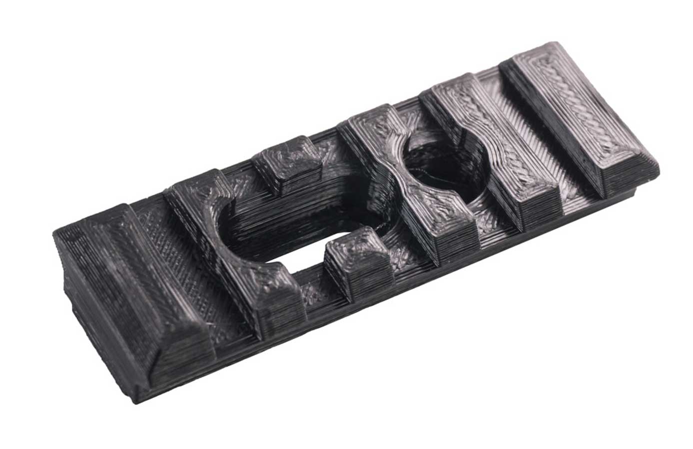 Планка picatinny Strike 60 мм выполнена по технологии 3D печати из PETG пластика. Материал отличается высокими показателями прочности на излом, а также устойчив к воздействию влаги и щелочей. Это увеличивает срок службы изделия и позволяет использовать его даже в неблагоприятных погодных условиях. Планка устанавливается на привод с помощью винтов (не входят в комплект, приобретаются отдельно), а также может быть закреплена на интерфейс KeyMod.