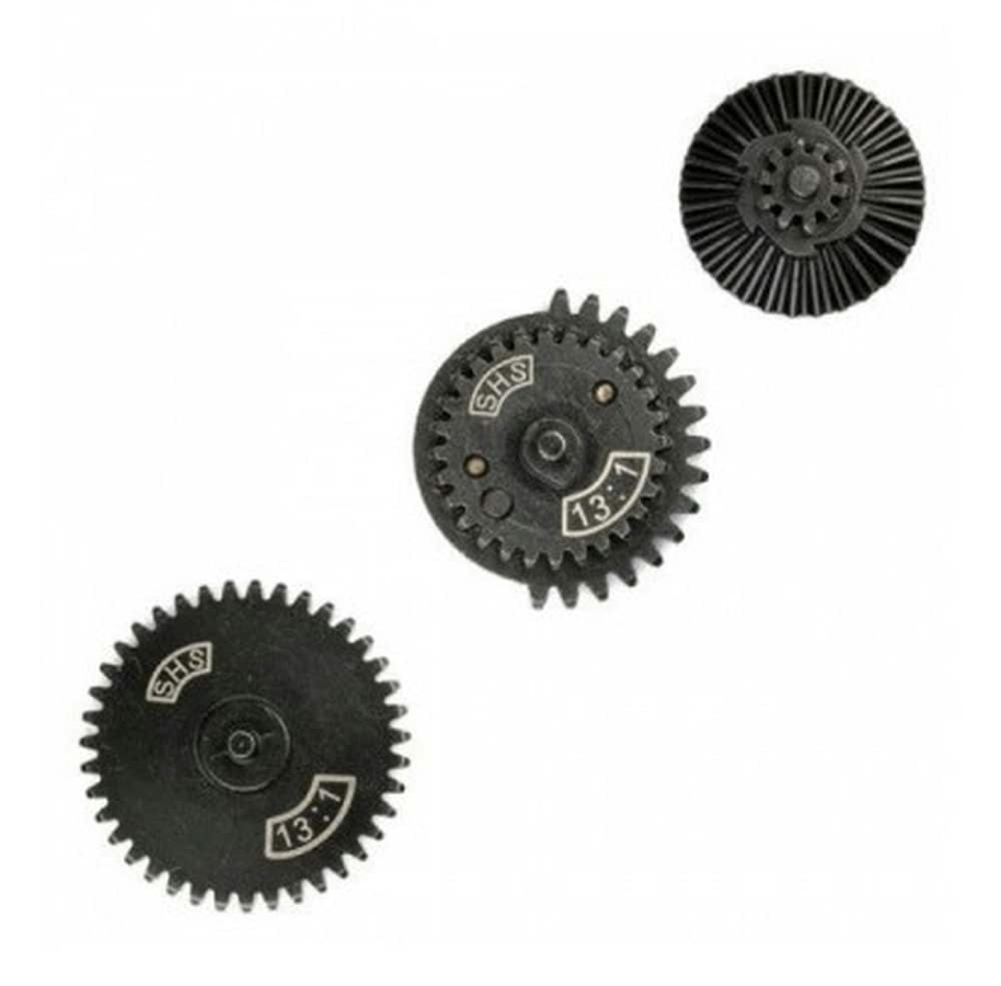 Набор добротно сделанных «быстрых» шестерен от SHS. Передаточное число 13:1 говорит о том, что такие шестерни образуют более оборотистый редуктор, делающий ваш привод более скорострельным. Большая скорость вращения дается меньшим крутящим моментом, поэтому не стоит нагружать такие шестерни пружинами жестче, чем sp-120, в противном случае Вы перегрузите мотор и аккумулятор. Однако в рекомендованном диапазоне нагрузок будет получен отличный результат и бодрая скорострельность. Шестерни изготовлены из стали, имеют прямозубую структуру, отлично подойдут при использовании подшипников.