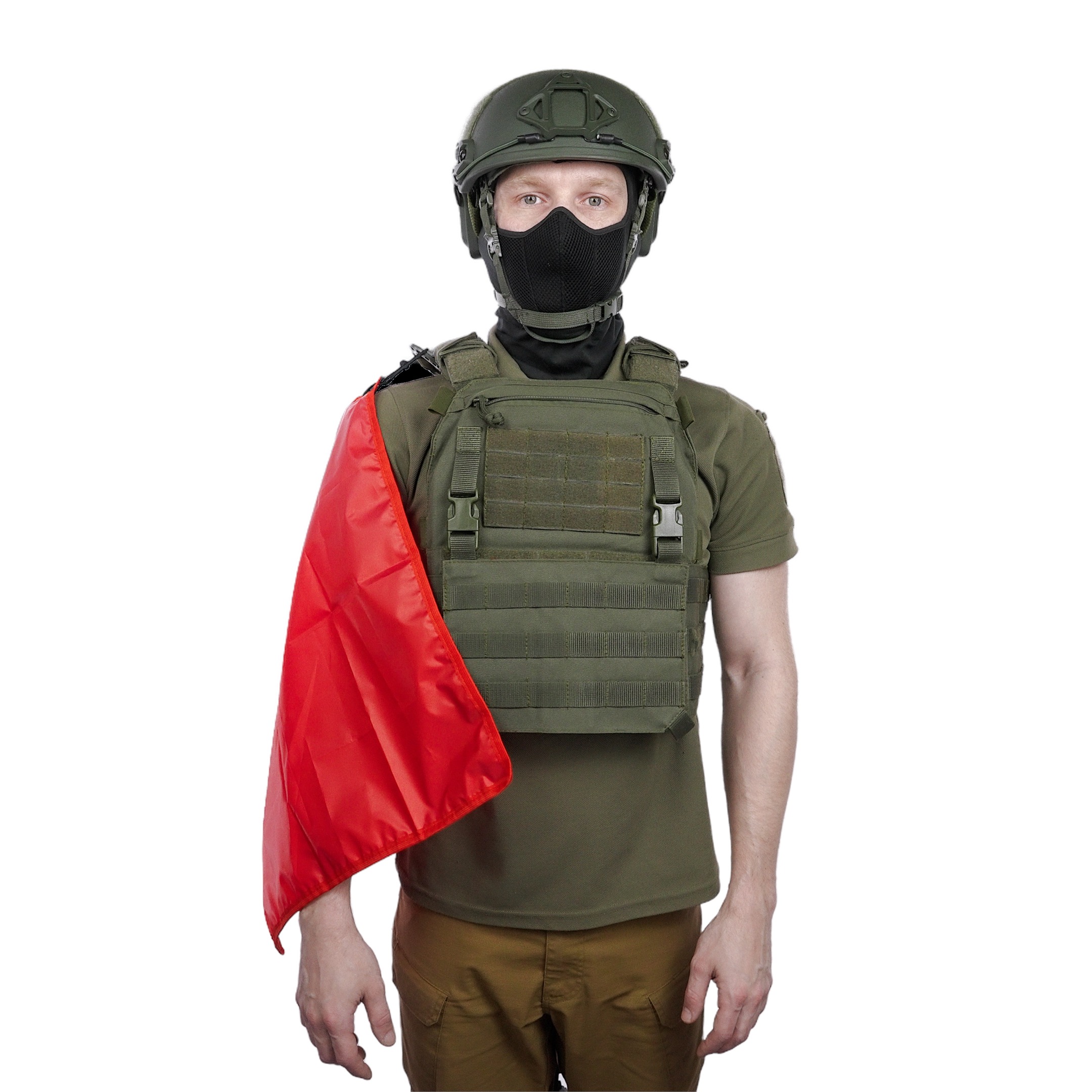 Красный платок Strike предназначен для обозначения «смерти» игрока. В одном из его углов расположен люверс с эластичной петлей для закрепления на снаряжении. На двух других противоположных углах (наискосок) можно наблюдать велкро крепление, которое поможет прикрепить изделие к снаряжению. Красная повязка – предмет первой необходимости на любой страйкбольной игре. Именно она поможет обозначить попадание в игрока и предотвратить дальнейший огонь по нему. Размер красной повязки 50х50 см принят за стандарт и прописан в правилах многих мастерских групп по России благодаря тому, что используя такую повязку вы точно и недвусмысленно обозначите себя в положении "вне игры".