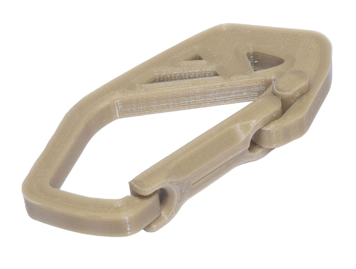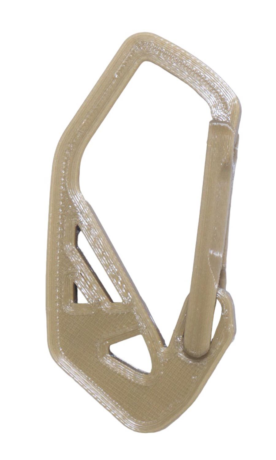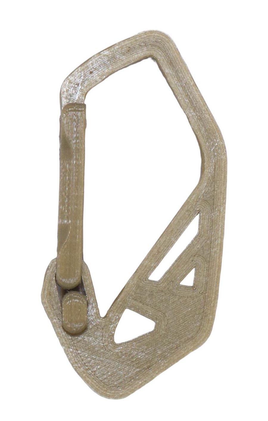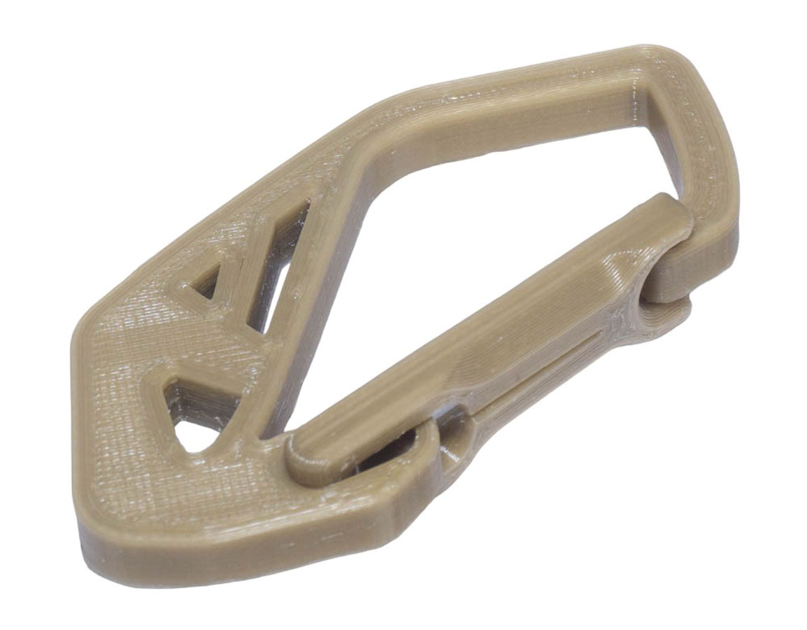Пластиковый карабин от компании Strike выполнен методом 3 D печати. Изготовлено изделие из прочного и гибкого PETG – пластика. Карабин может использоваться для крепления различных вещей с небольшим весом. Компактный и легкий карабин Strike отлично подойдёт для ношения на поясе или снаряжении с интерфейсом MOLLE таких вещей как: перчатки, очки, ключи и многое другое.