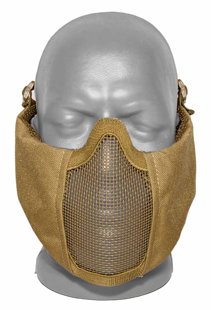 Защитная маска для страйкбола производства компании Kingrin. Хороший вариант защиты лица с расширенной площадью. Маска полностью защищает лицо ниже линии очков, а так же закрывает площадь по бокам вплоть до ушей. Легкий, компактный и удобный вариант защиты. Текстильная основа из очень прочной ткани, которая отлично гасит попадания страйкбольных шаров. Изнутри тканевая основа оснащена мягкой подкладкой с сетчатой структурой, которая обеспечивает комфортное ношение на лице. Сетчатая вставка по центру маски позволяет свободно дышать и переговариваться. Вставки из металлической сетки на ушах позволяют хорошо слышать окружающие звуки. На голове маска удерживается при помощи 4-х регулируемых ремней из текстильной резинки. Вместе с этой маской рекомендуем использовать гарнитуры скрытого ношения, так как защита ушей не очень сочетается с классическими радиогарнитурами и активными наушниками.