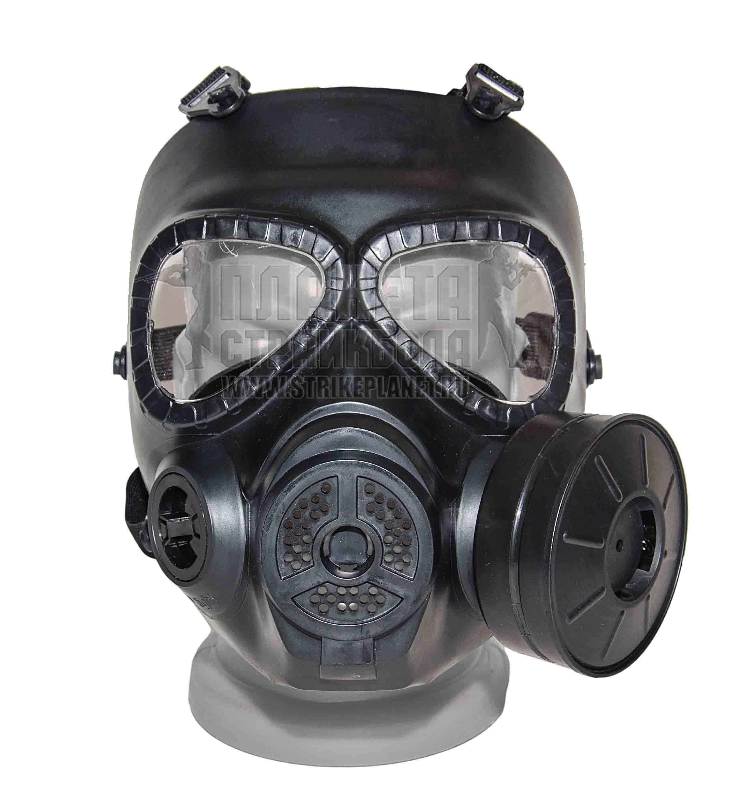 Защитная маска на лицо, стилизованная под противогаз. Маска предназначена для защиты лица от попадания шаров в страйкбольных играх и обеспечивает полную защиту лица от подбородка до лба. Она поможет избежать травм и повреждений кожи при ведении боя на коротких дистанциях и в зданиях, где шансы получить очередь шаров в лицо значительно увеличиваются. Именно поэтому маска будет интересна в первую очередь игрокам, которым нежелательно появляться на работе с четко различимыми отметинами от активно проведенных выходных. Благодаря стилизованному внешнему виду, маска не выбивается из «военного» образа, и не режет глаз. Более того, при использовании маски вместе со шлемом и другими элементами защиты, вроде бронежилета и налокотников, игрок может создать образ бойца спецподразделения.