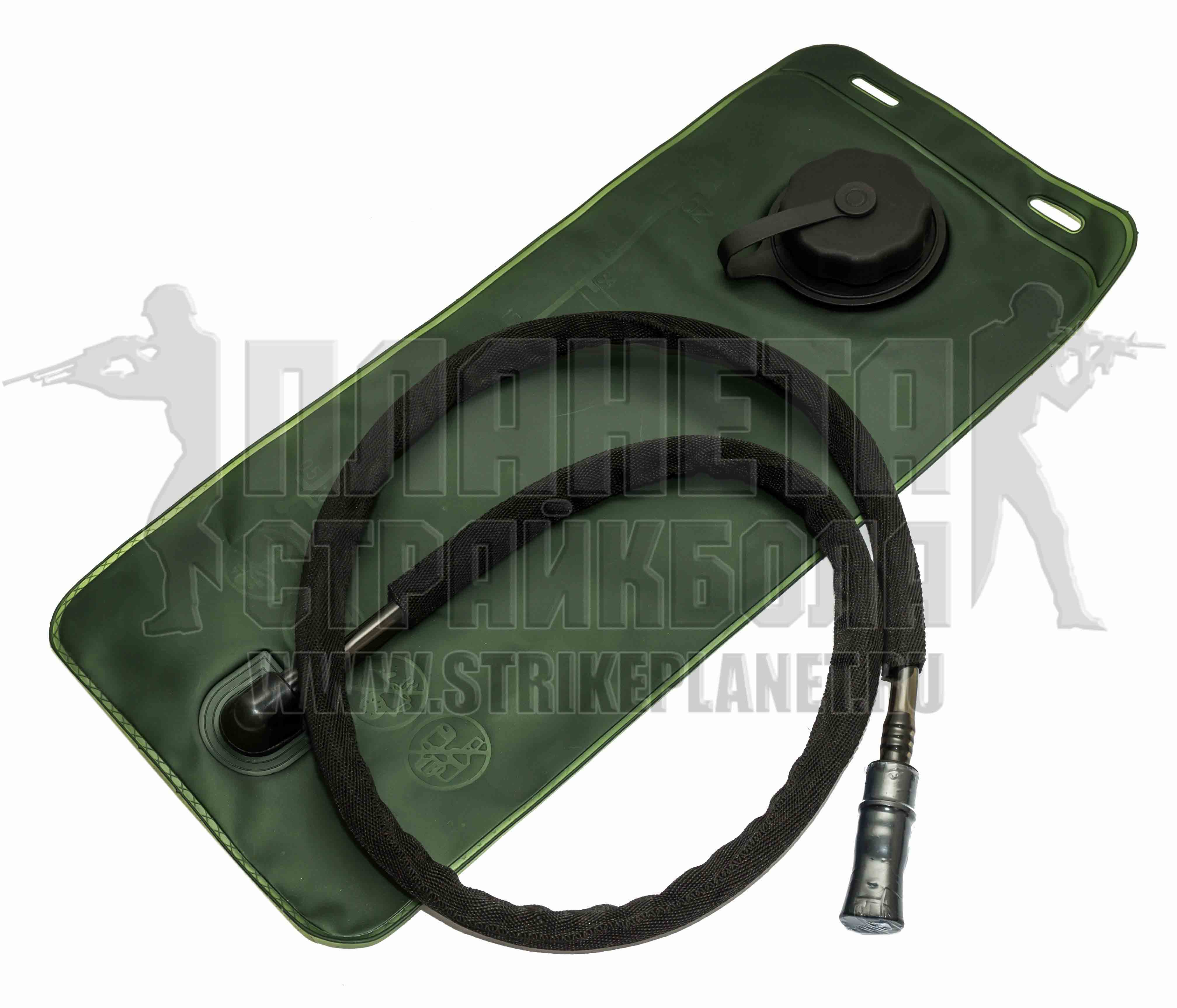 Гидратор (медуза) объемом 2.5 литра, предназначена для переноса дополнительного запаса воды, для наполнения жидкостью имеется широкая горловина в верхней части гидратора. В нижней части располагается крепление резинового шланга, после установки гидратора в питьевую систему шланг выводится наружу и располагается с удобной стороны для быстрого доступа к воде. На конце шланга предусмотрен ниппельный клапан типа «сосок». ВНИМАНИЕ используется только с водой(наливать колу с виски не рекомендуется). Цвет черный.