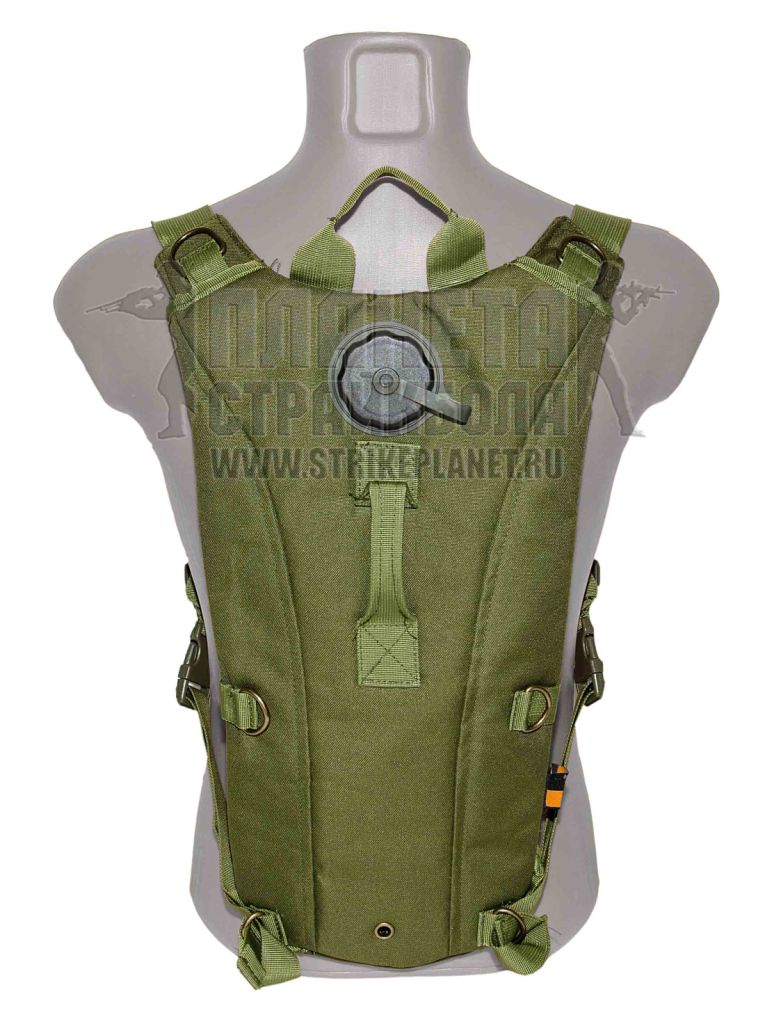 Данная питьевая система включает в себя специальный ранец для переноски и собственно сам гидратор (гидропак) – емкость для воды, рассчитанную на 3 литра. Ранец гидратора изготовлен из прочной ткани, устойчивой к истиранию и повреждениям. Слой ткани достаточно толстый для защиты уязвимого гидропака от повреждений. Плечевые лямки ранца имеют регулировку по длине, что позволяет подогнать его под людей разных габаритов, а длины лямок достаточно, чтобы носить гидратор поверх надетого бронежилета и разгрузочного жилета. Лямки имеют застежки фастексы, так что при необходимости ранец может быть быстро сброшен. Если отстегнуть их. Между собой плечевые лямки стягиваются грудным ремнем, который также застегивается на фастекс и имеет регулировку по длине. Ремень обеспечивает плотное прилегание ранца к телу, исключая его соскальзывание при активных передвижениях. На лямках и на самом ранце нашиты металлические D-кольца. Сегментированная спинка ранца с подкладом, повышает комфорт при ношении гидратора. С внешней стороны на ранец нашиты вертикальная и горизонтальная ручки для переноски. В нижней части ранца имеется металлическое отверстие – люверс, для слива попавшей внутрь воды.