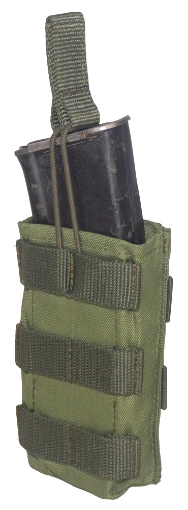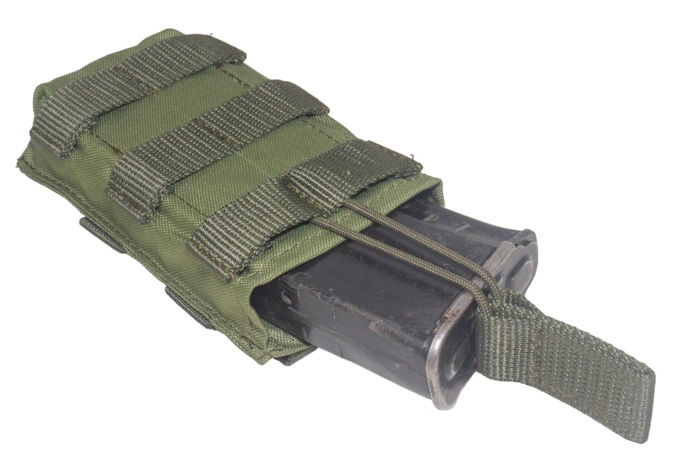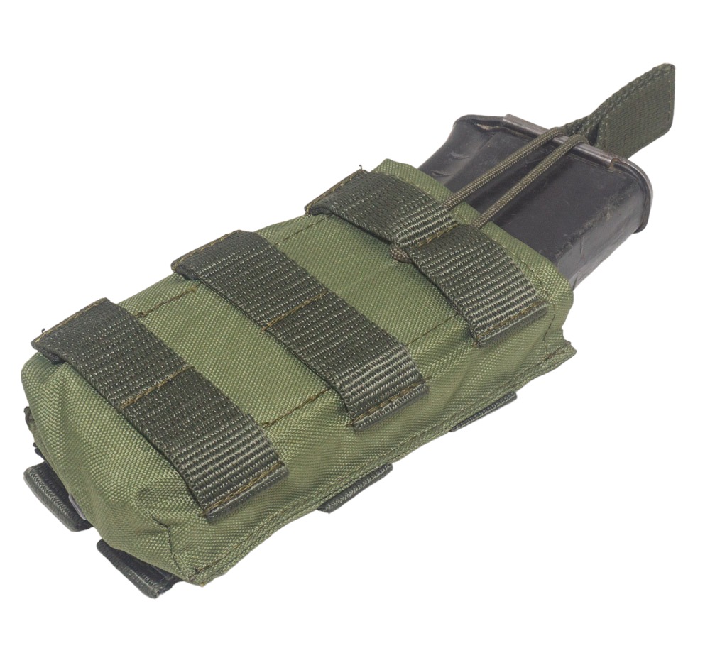 Подсумок Strike под магазин автомата АК-серии выполнен из прочного влагостойкого материала. Это позволит не беспокоиться о его сохранности во время использования при плохих погодных условиях. Для фиксации магазина внутри используется эластичный шнур с удобным держателем для быстрого извлечения содержимого подсумка. Такая конструкция позволит увеличить скорость замены магазина, давая владельцу дополнительные секунды столь ценного в бою времени. На лицевой стороне изделия имеются стропы MOLLE. Подсумок можно установить на пояс или любую разгрузочную систему с молли интерфейсом.