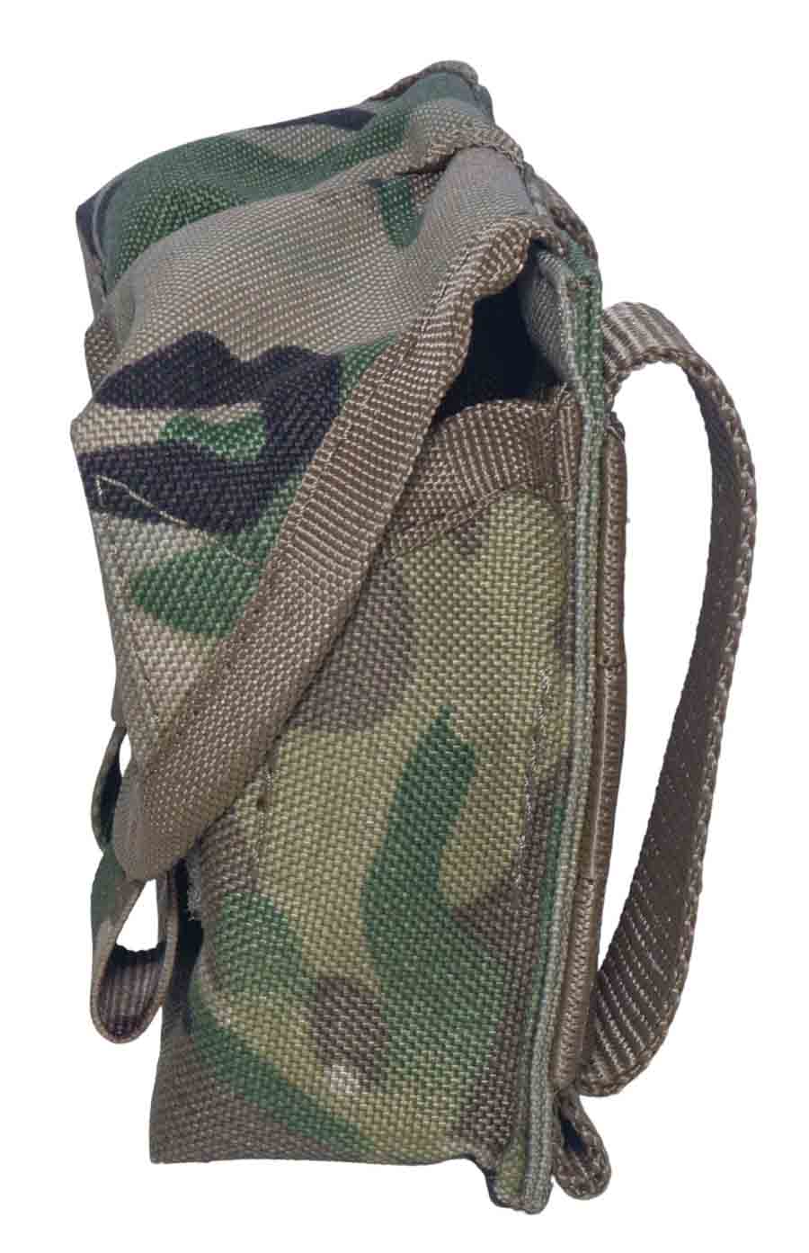 Гранатный подсумок от бренда Strike предназначен для переноски двух гранат на разгрузке оснащенной системой крепления MOLLE. Так, представленную модель можно установить как на плитник так и на разгрузочный жилет. Изделие выполнено из Кордуры. Ткань обладает прекрасными защитными свойствами, устойчива к влиянию погодных условий, крепкая и прочная на разрыв. Подсумок имеет два отделения под гранаты, каждое из которых оборудовано клапаном на велкро. Для удобства доступа к содержимому, на концах клапанов предусмотрены нейлоновые хлястики. Во избежания попадания воды, на дне подсумка предусмотрены металлические люверсы.
