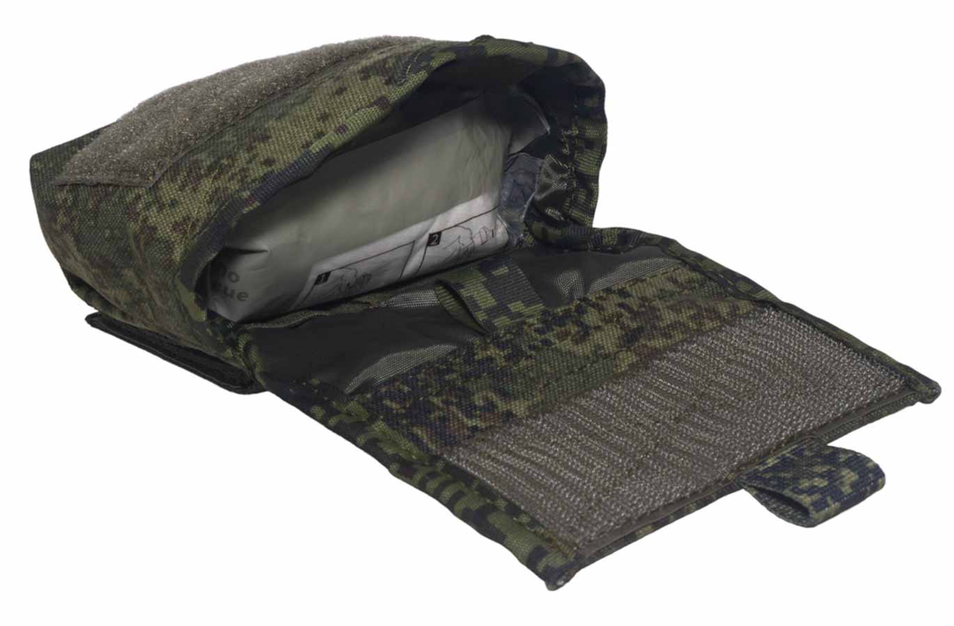 Изделие отлично подходит для размещения самых необходимых перевязочных материалов: жгута / турникета и перевязочного пакета с бинтом. Подсумок пригодится для сотрудников силовых ведомств и военнослужащих.