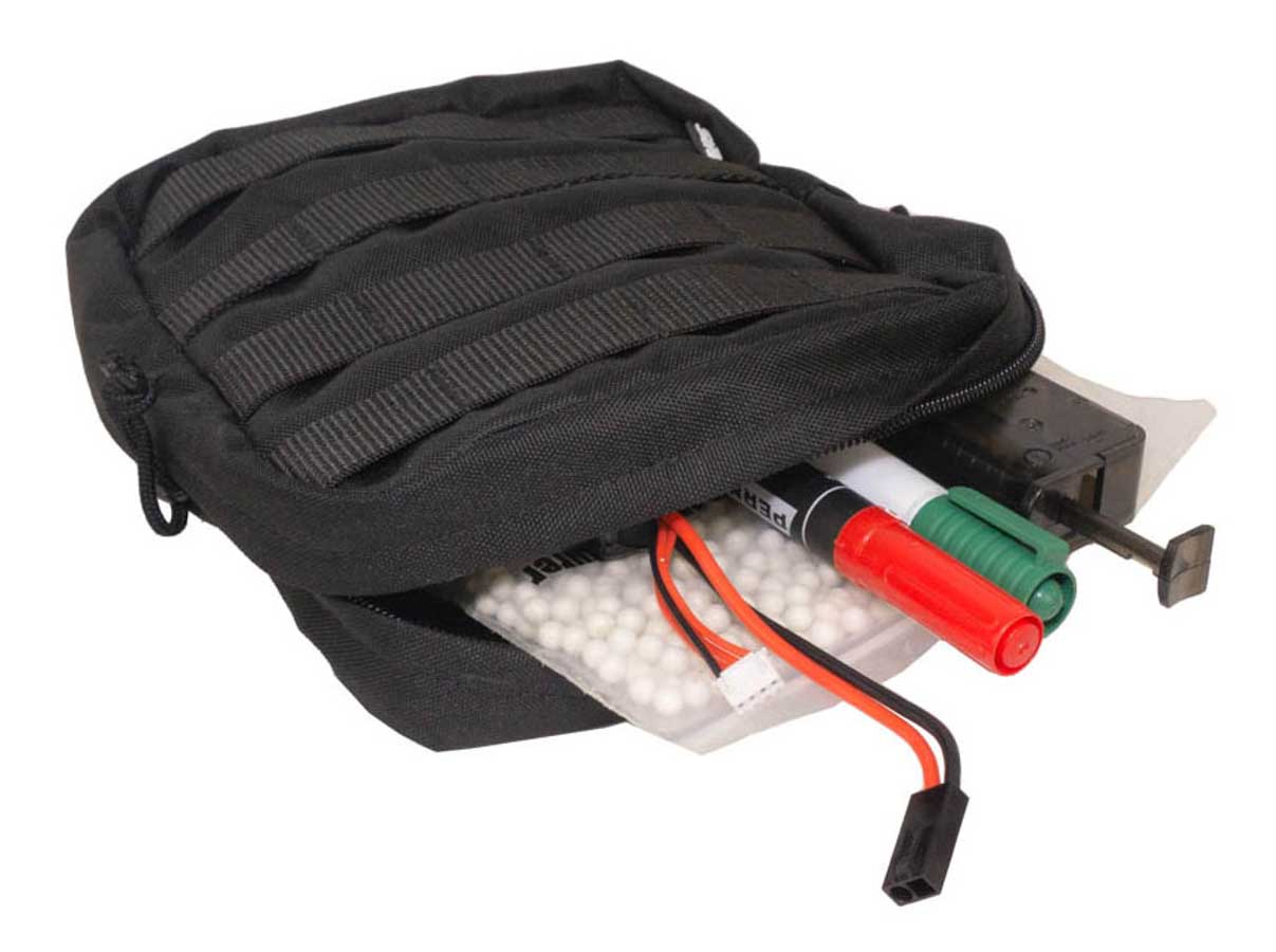 Утилитарный подсумок Strike выполнен из легкой и качественной ткани - Оксфорд. Материал износостойкий и устойчивый к воздействию воды и грязи. Благодаря таким полезным свойствам не придется беспокоиться о сохранности содержимого. В нижней части подсумка установлен металлический люверс, который предназначен для отведения попавшей внутрь воды. На внешней стороне располагаются стропы MOLLE. Они позволят увеличить число сценариев использования подсумка с помощью установки дополнительных элементов снаряжения. Изделие отлично подойдет для хранения и переноски инструментов, элементов внешних обвесов, медицинских принадлежностей и многого другого. Если вы являетесь игроком в страйкбол, то благодаря представленной модели, вы можете переносить страйкбольные шары, лоадеры, письменные принадлежности, дополнительный аккумулятор и другие предметы, без которых в страйкболе обойтись нельзя. Для установки на снаряжение используется уже привычный интерфейс MOLLE.