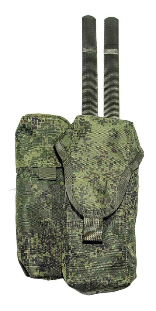 Подсумок производства отечественной компании Техинком, который предназначен для переноски двух 30-ти зарядных магазинов автомата АК74 или АКМ и сигнальных средств: дымовой гранаты РДГ или двух сигнальных патронов РСП / РОП. Эта модель используется вместе с жилетами 6Ш112 и 6Ш116. Подсумок изготовлен из прочной ткани, которая имеет отличную устойчивость к разрыву и истиранию. Для защиты содержимого подсумок имеет клапана закрытого типа с двойной застежкой – на турникетной кнопке и липучке велкро. Чтобы магазины сидели плотно и не гремели внутри подсумка, внутри установлена перегородка, которая при необходимости вынимается. На дне обоих отделений имеется отверстие люверс для слива воды.