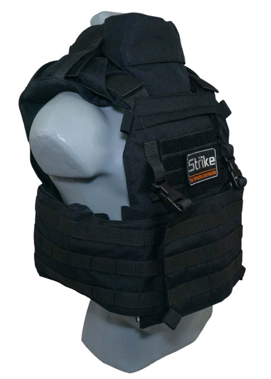 Шея – в боевых условиях, одно из самых незащищённых мест на теле человека, при попадании  осколков, риск летального исхода резко возрастает. Очевидно, что вопрос защиты данной области приобретает высокий приоритет. Защита шеи от компании Strike, или ШПС (Шейно-плечевая система), изготовлена из прочного материала - кордуры 1000 D. На изделии присутствуют отсеки для размещения бронированных пакетов, кевлара. ШПС фиксируется к плечевым лямкам на плитнике за счет застежек на велкро-липучках, и к внутренней стороне плитника при помощи велкро-панели. Данная модель пригодится военнослужащим участвующим в боевых действиях, так и любителям игр в Страйкбол.