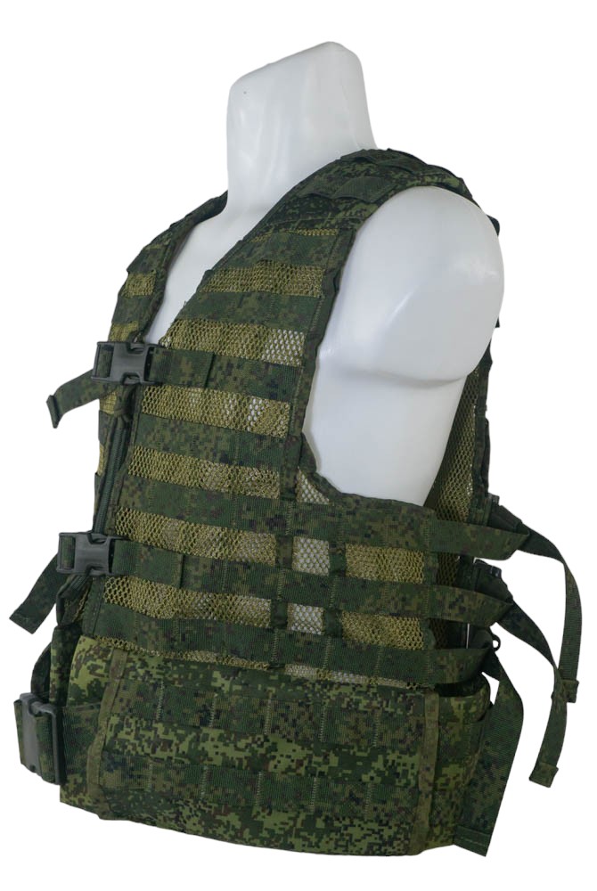 Жилетная основа 6Ш117 от бренда Техинком предназначена для переноски различного военного снаряжения исходя из задач. Представленная модель состоит из двух грудных панелей с плечевыми накладками, спинной панели и корректируемого пояса. Из особенностей, стоит выделить систему с креплением УМТБС (MOLLE). Также, благодаря сетчатой основе жилета, обеспечивается комфортное использование изделия в жаркую погоду.