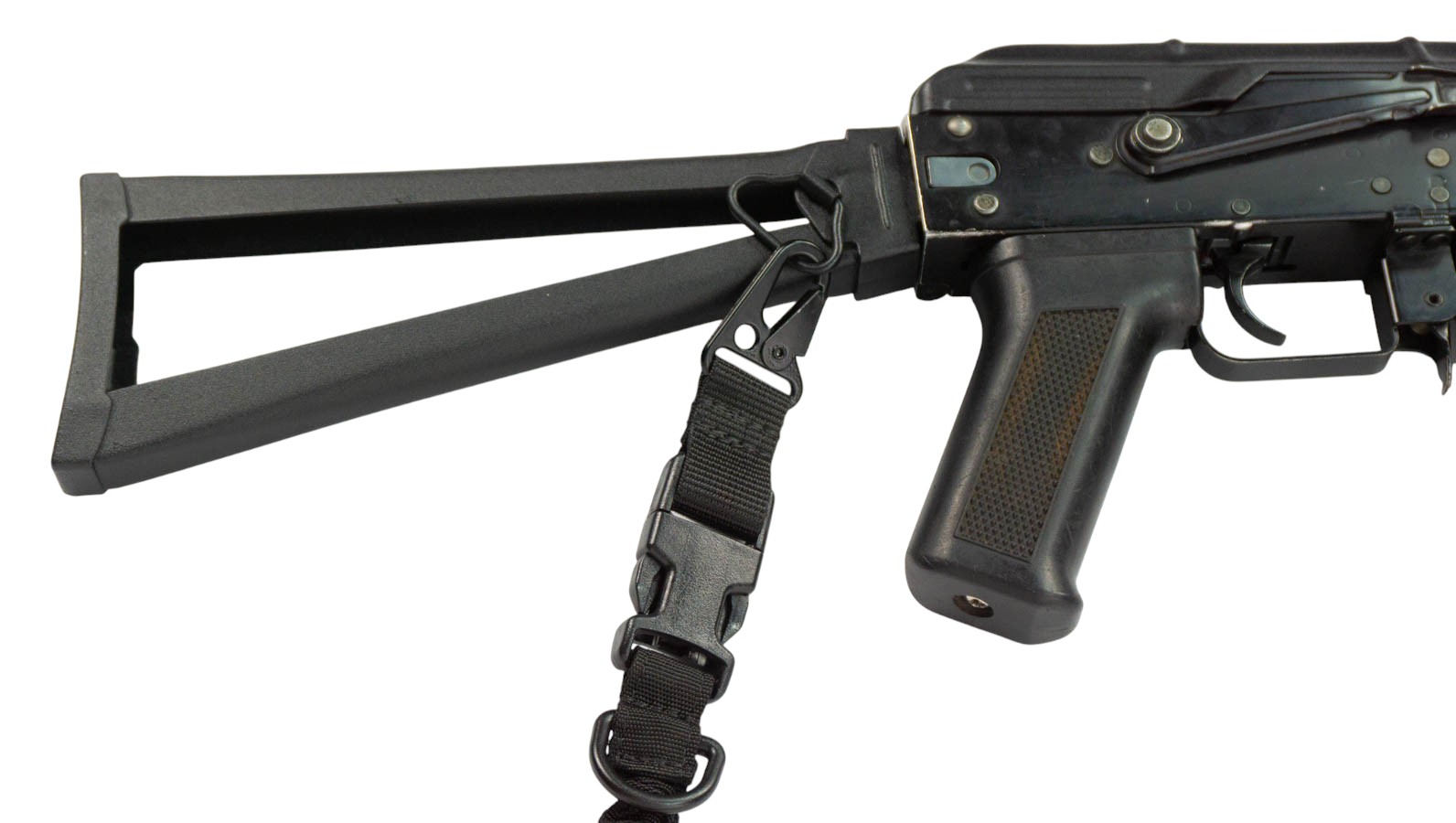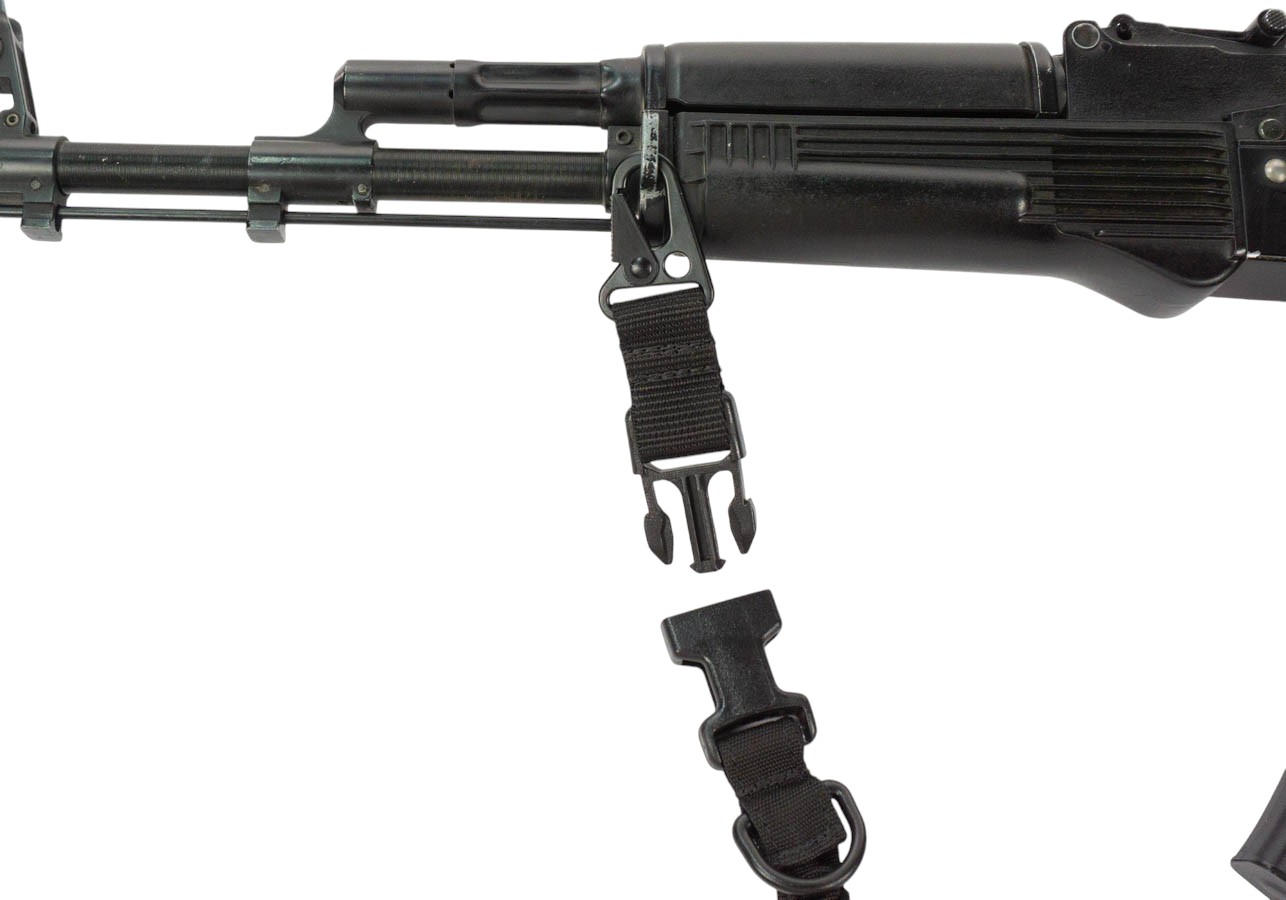 •    Быстросъём (quick-release). Интегрированный фастекс позволяет в одно движение отсоединить оружие — удобно при эвакуации, смене рук или аккуратном сложении снаряжения.