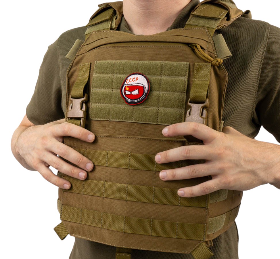 Нашивка Strike "Колобок космонавт СССР" выполнена по мотивам известного геополитического веб-комикса Countryballs, где основными персонажами являются страны мира, изображенные в виде шаров, с белыми глазами, и раскрашенным во флаги стран, которые они представляют. Так, на данной нашивке, мы видим шар представляющий СССР, на голову которого надет, космический шлем. Обратная сторона нашивки имеет велкро- липучку. Изделие имеет габариты: 70х70 мм.