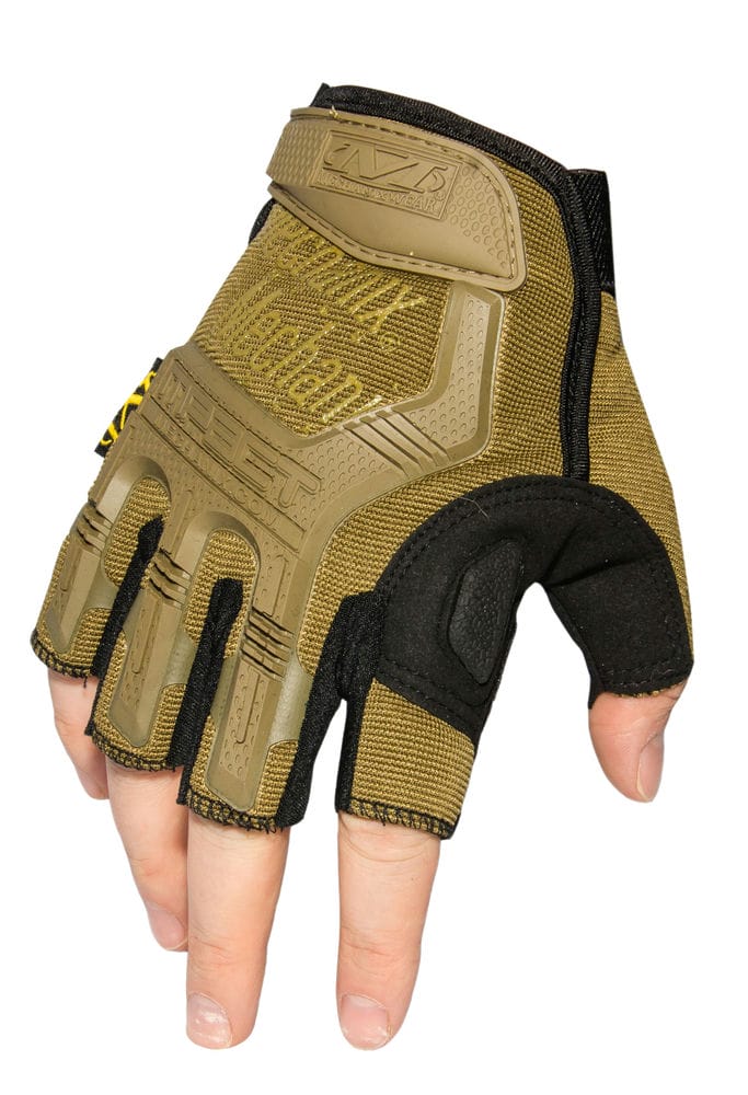 Полупальцевые перчатки, страйкбольная версия Mechanix китайского производства. Модель довольно прочая, обеспечивает хорошую защиту кисти. С тыльной стороны ладони вшиты резиновые вставки для дополнительной защиты. Перчатки застегиваются на велкро в районе запчасти. В целом довольно прочная и главное, универсальная модель, которая защищает кисть и при этом сохраняет чувствительность пальцам для проведения тонких работ с инструментом или оружием.